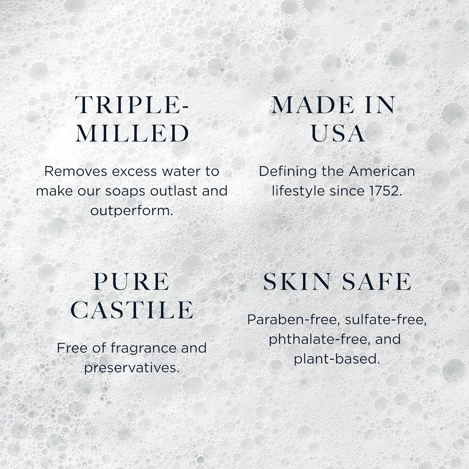 - Triple-Milled for Exceptional Quality: Crafted through a triple-milling process for a rich, luxurious lather and a longer-lasting bar. Glycerin-rich to lock in moisture and leave skin soft and refreshed.