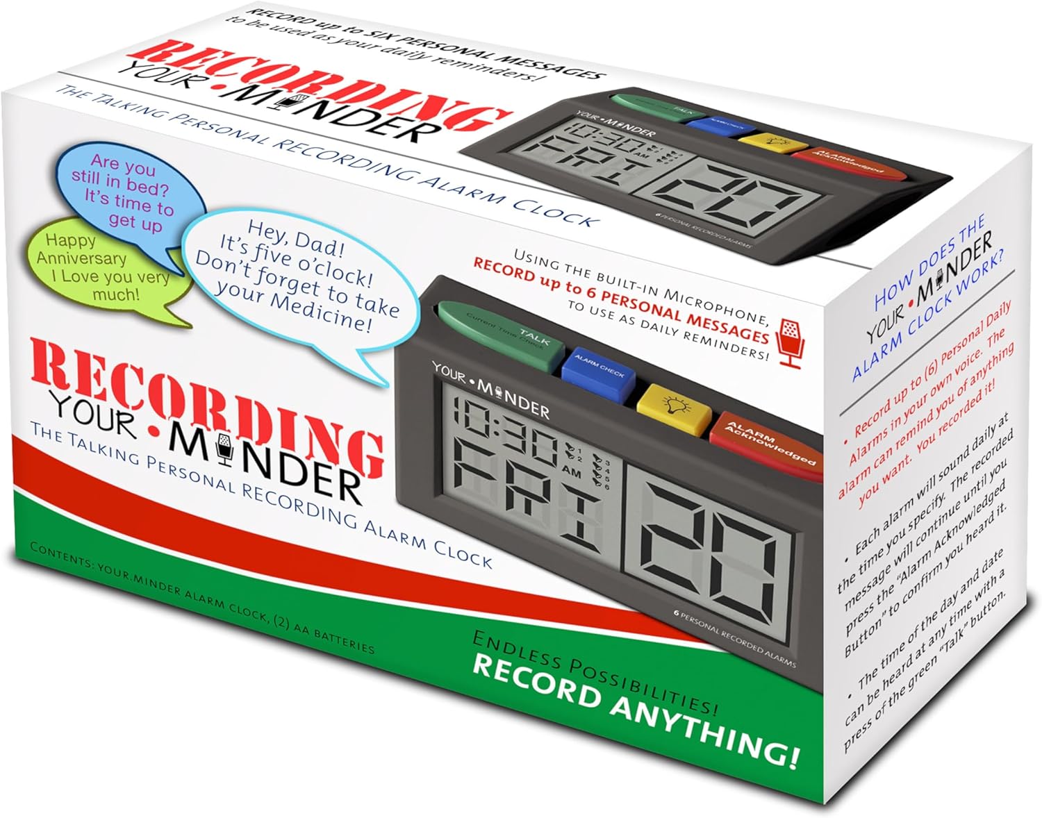 Your Minder Voice Record and Alarm Replay Reminder Clock with Loud Multiple Alarms, Recordable Talking Alarm Clock for Medication Reminders (With Adapter) Gift for Mom, Dad, Elderly, Seniors