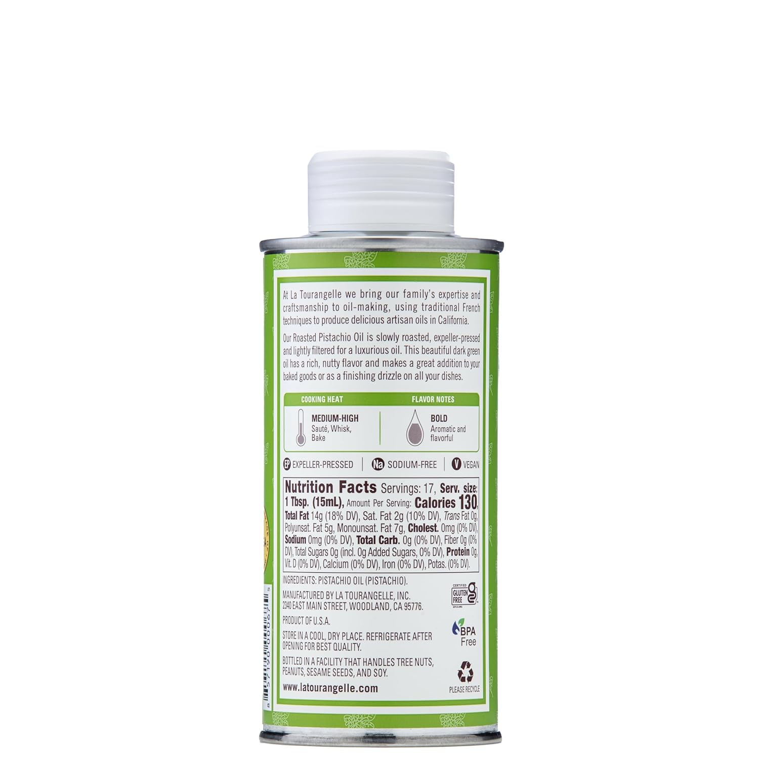 La Tourangelle, Roasted Pistachio Expeller-Pressed Oil for Cooking, Baking, and Beauty, Adds Flavor to Vinaigrettes, Sauces, Marinades, Green, 8.45 Fl Oz