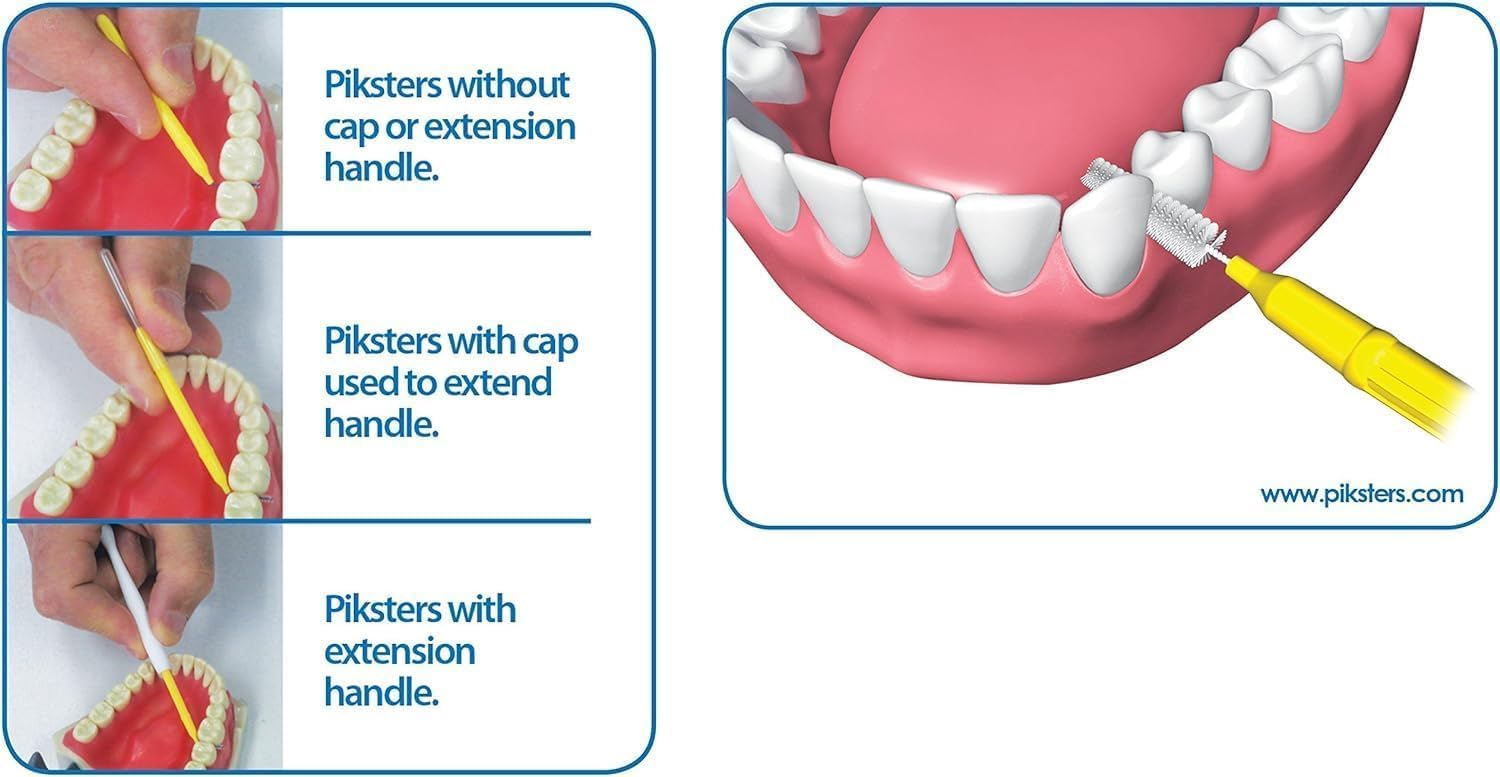- Piksters bristles reach into and clean the indents on the surfaces between your teeth especially at the gum line of molars and premolars more effectively than floss