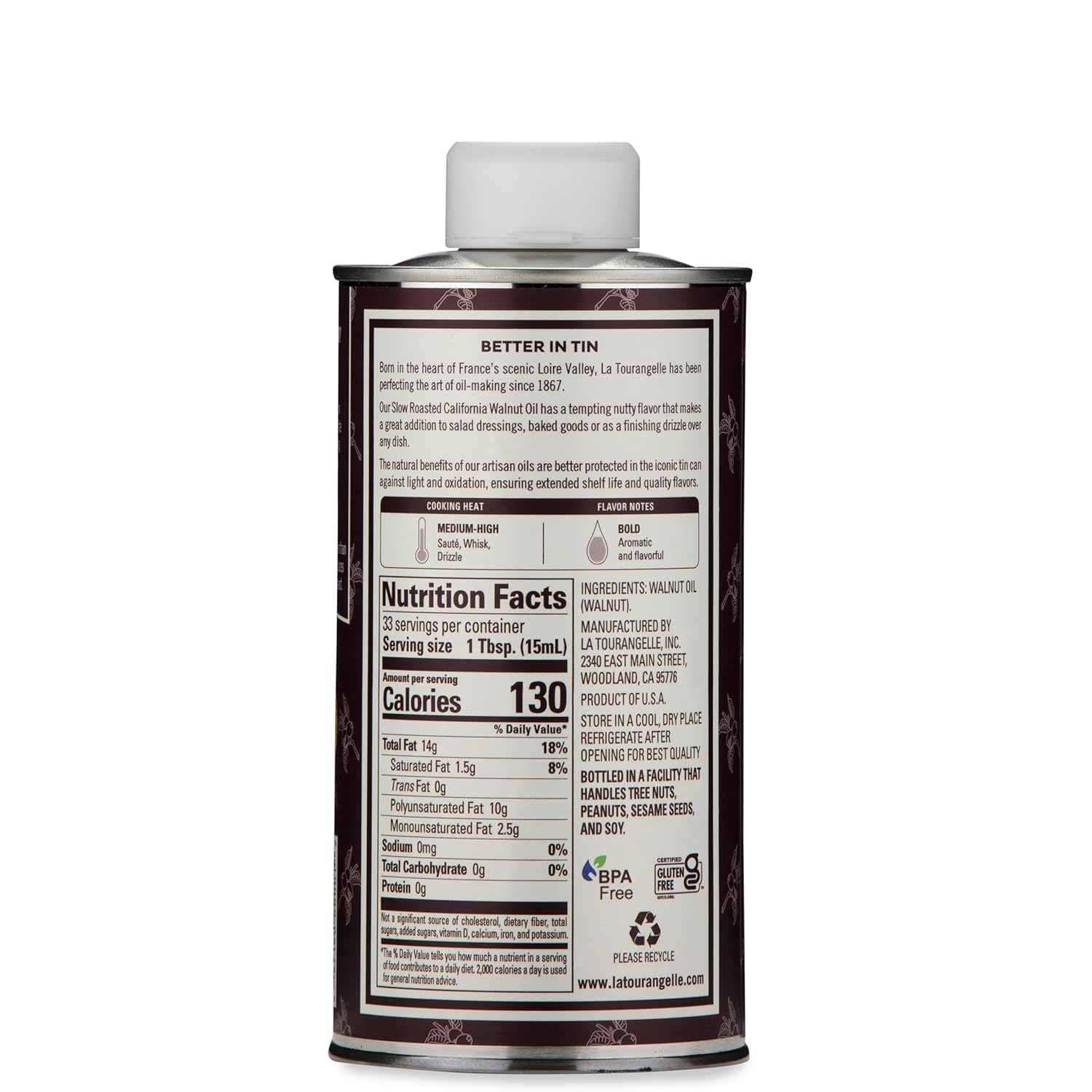 - Gourmet and Sustainable: La Tourangelle's natural artisan oils provide the perfect touch to make a delicious breakfast, lunch, or dinner. We are passionate about making high-quality ingredients that are good for the table, community, and planet. Through artisan production methods and nature-friendly tin packaging, we want to empower people to cook like they care.