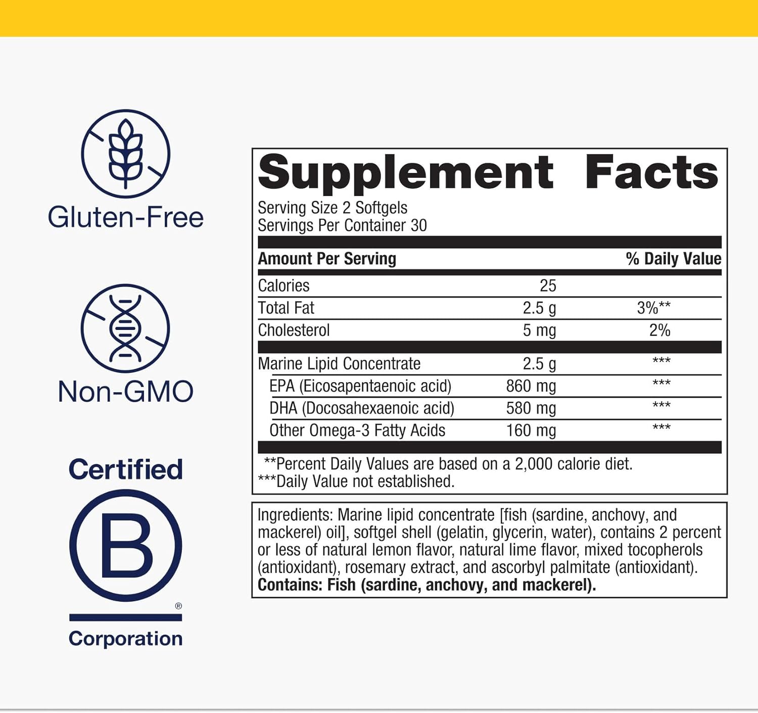 - Sustainably Sourced Omega-3 Fish Oil: Derived from cold-water fish from fisheries that observe best practices for sustainability and protecting ocean environments