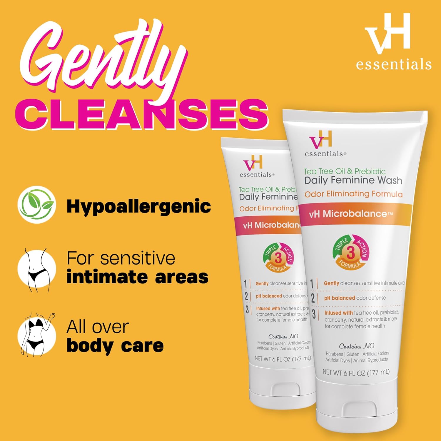 - Vaginal odor defense from vH Microbalance: Prebiotics help nourish good bacteria that support fresh vaginal flora, while tea tree oil provides natural protection against odor-causing bacteria – without harsh ingredients