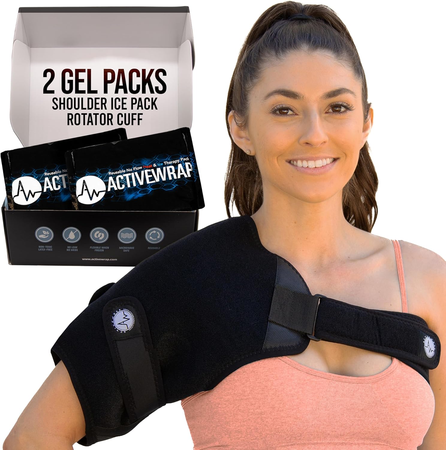 ActiveWrap Shoulder Ice Pack Wrap, With 2 Reusable Heat & Ice Packs for Shoulder Pain Relief, Rotator Cuff Cold Therapy, Adjustable Compression Straps, Post-surgery Must-have, Small/Medium