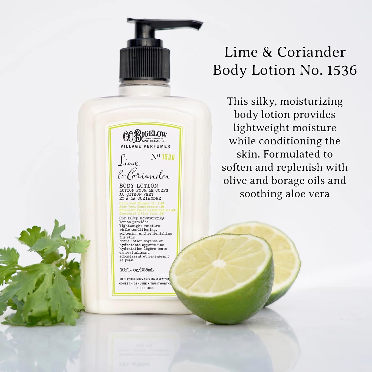 C.O. Bigelow Lime Coriander Body Lotion, Village Perfumer Moisturizing Body Lotion with Aloe Vera, Borage Oil & Olive Oil, 10 Fl Oz