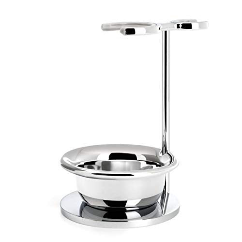 - COMPLETE SET: This eye-catching, timeless shaving kit includes both a chrome stand for displaying the brush and razor along with a chrome bowl for shave cream or soap. Makes a fantastic starter kit and gift set for anyone.
