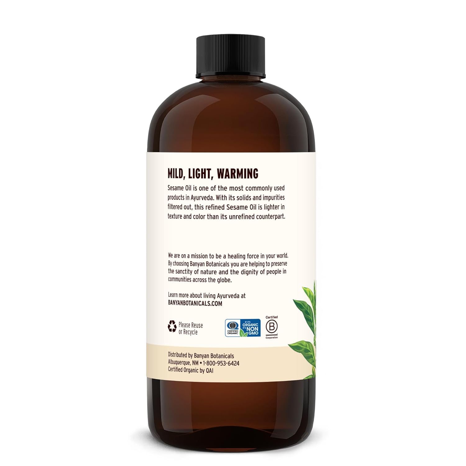 Banyan Botanicals Sesame Oil – Organic & Refined Sesame Oil for Skin, Body, Hair & More – Multiple Sizes – 16 oz – Non GMO Sustainably Sourced Vegan