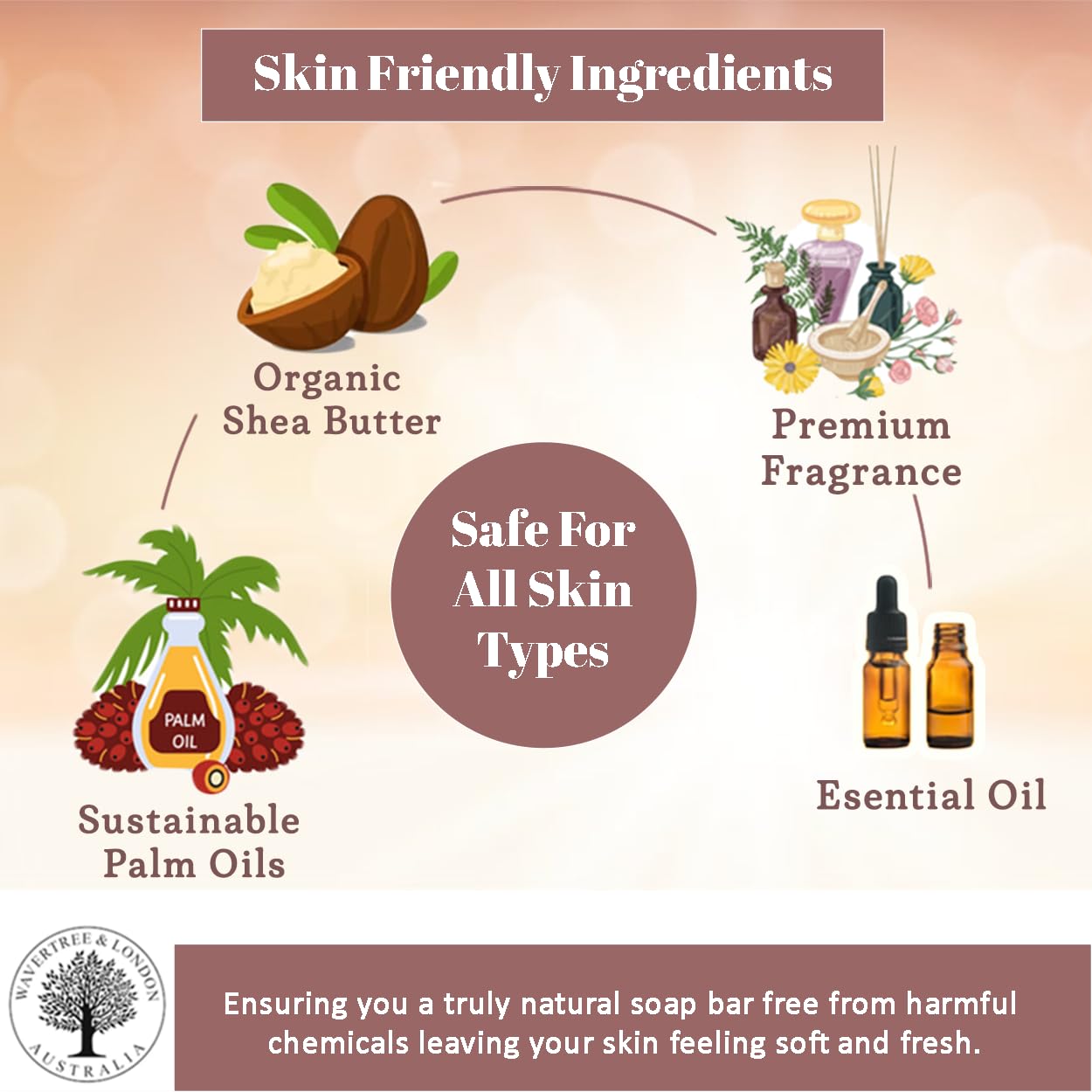 - 🌿 Natural Ingredients | Non-Toxic Bar Soap ➤ Our hypoallergenic bar soaps are made with the finest natural native Australian and globally sourced ingredients, including sustainable plant oils—ensuring a chemical-free and eco-friendly bathing experience. These non-toxic natural soap bars contain NO harsh chemicals, NO parabens, NO sodium lauryl sulfates, NO HEDP, and NO EDTA.