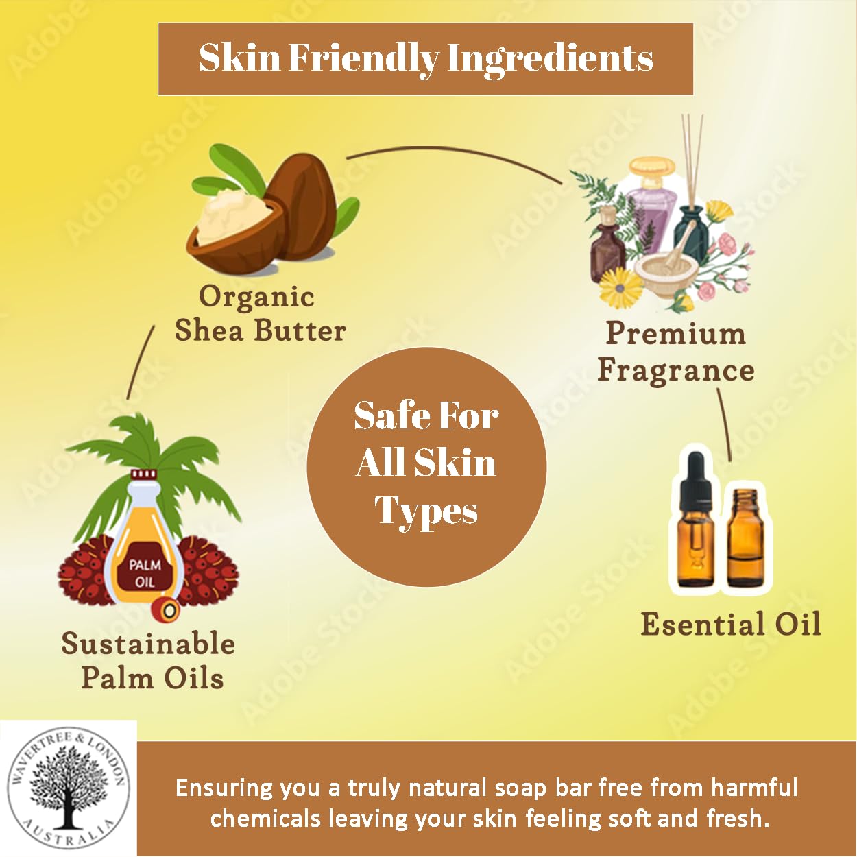 - 📋 Ingredients: Sustainable Palm oil, Palm Kernel Oil, Aqua (water), Certified Organic Shea Butter, Vegetable Glycerin, Essential Oils and/or Fragrance, Sodium Gluconate (natural sugar-based preservative), Sodium Chloride, Titanium Dioxide (food grade)