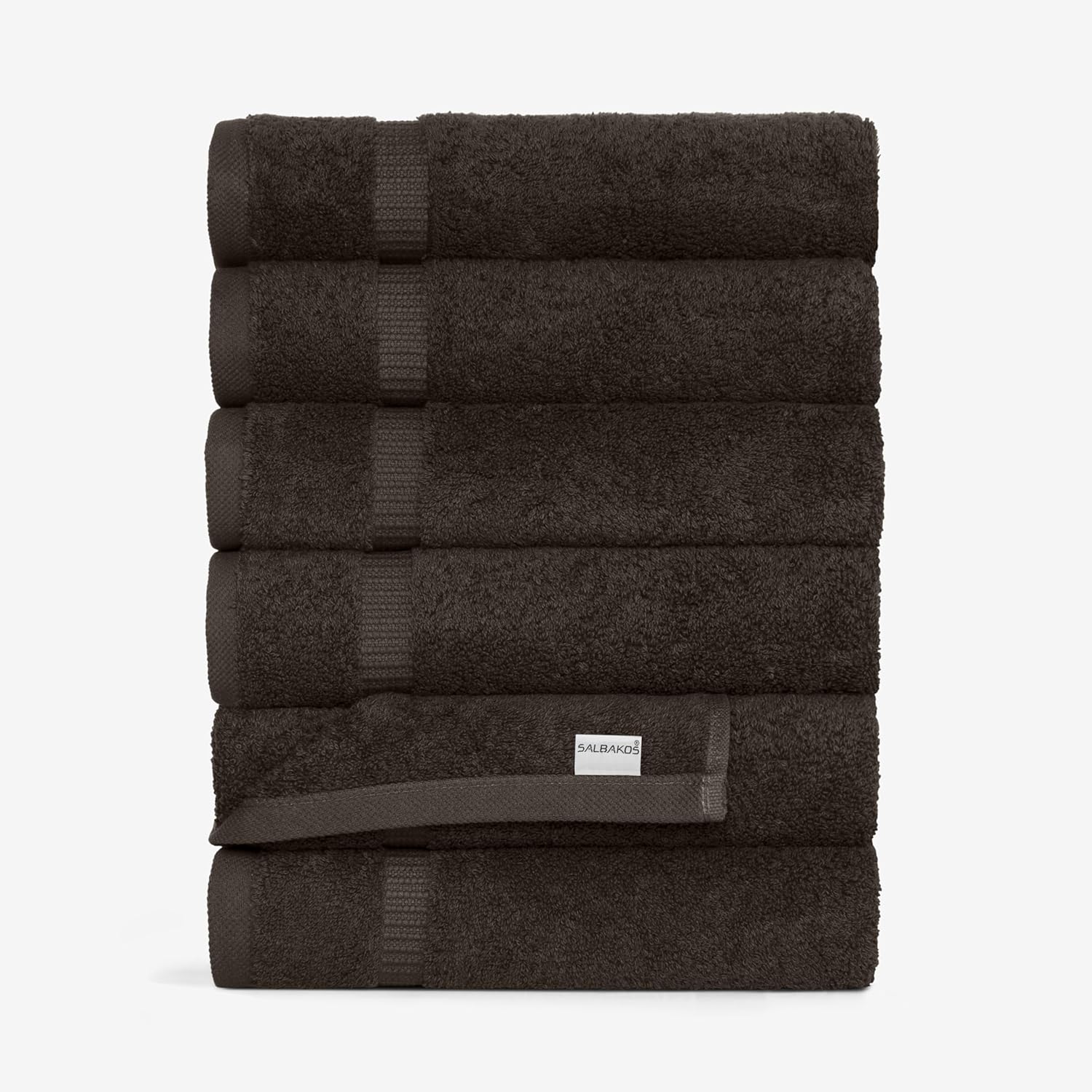 SALBAKOS 100% Turkish Cotton Hand Towel Set of 6 16x30 inch | Heirloom Quality | Hotel & Spa Collection | Soft, Super Absorbent, Long Lasting Hand Towels | Made in Turkey (Chocolate, 6 Hand Towels)