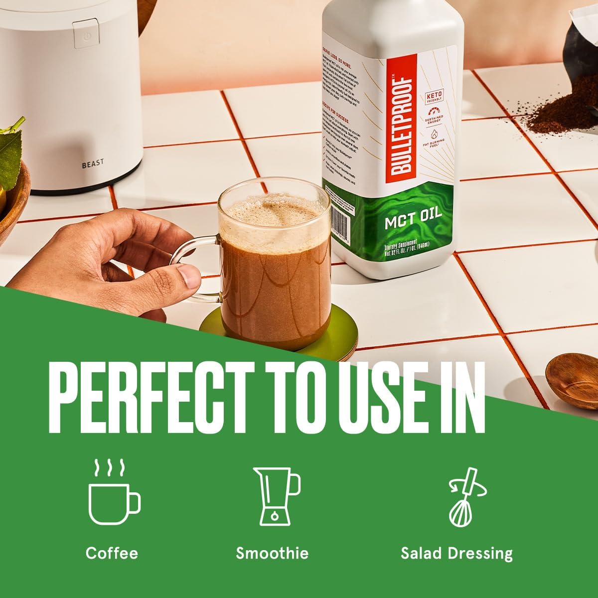 Bulletproof MCT Oil Made with C10 and C8 Oil, 32 Ounces, Keto Supplement for Sustained Energy, Brain and Body Fuel, Add to Coffee and Smoothies