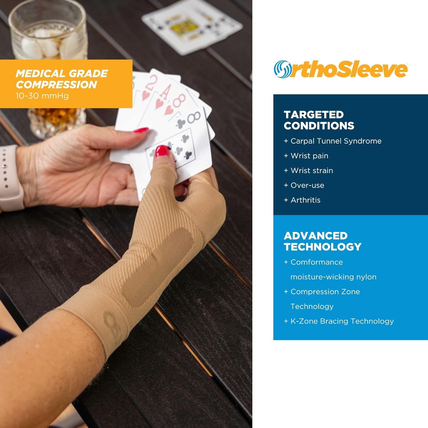 - K-Zone Therapy: OrthoSleeve's WS6 wrist brace for carpal tunnel is made with our patented K-Zone Technology which is essentially kinesiology taping without the tape. The strategically placed k-zone area is designed to provide maximum carpal tunnel relief during use. Our WS6 is made of quality, moisture-wicking fabric which allows the sleeve to breathe during movement. Our braces help eliminate sweat buildup to provide a cool, fresh workout.