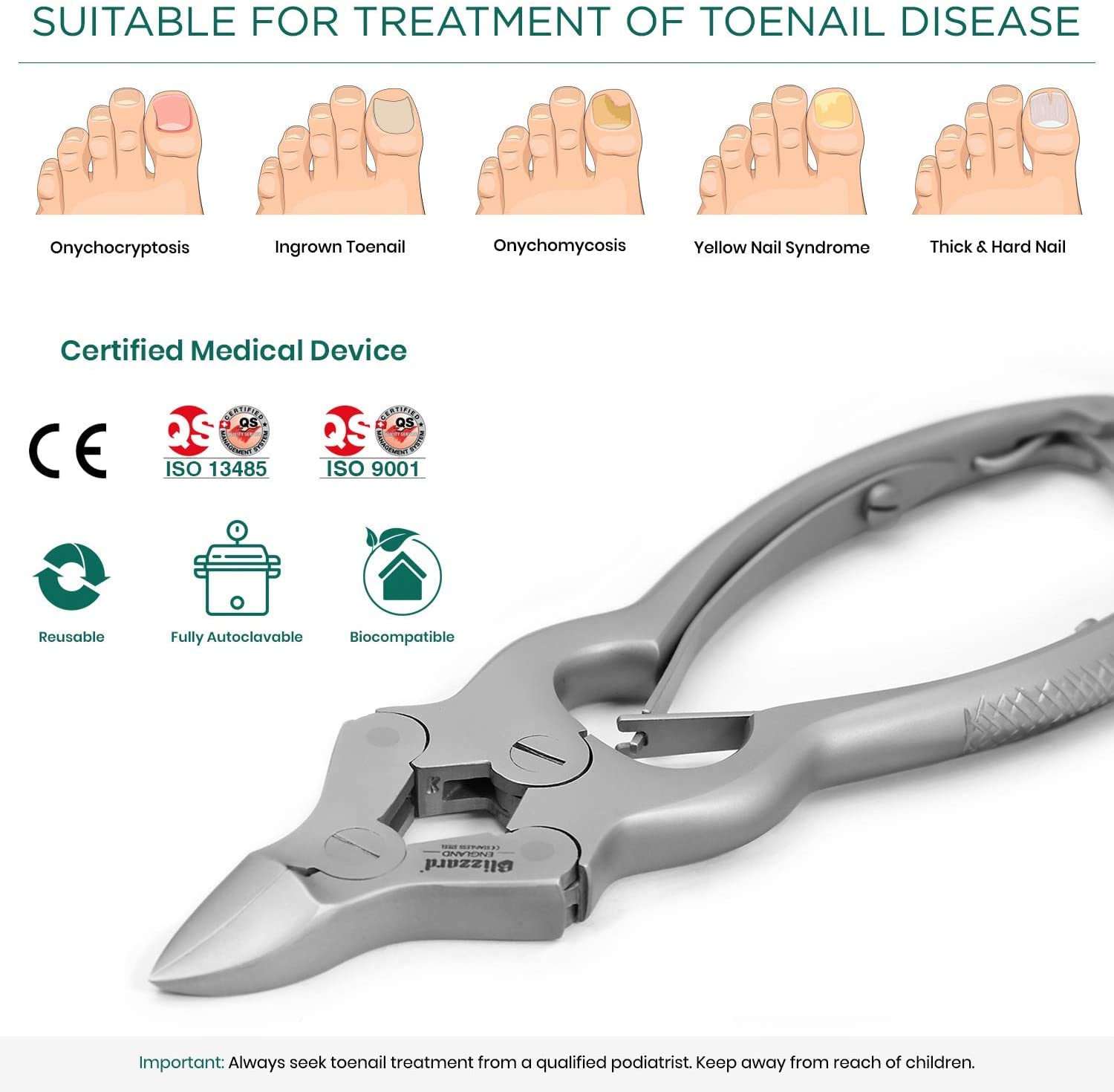 Toenail Clippers by Blizzard - Podiatrist Double Action Mycotic Nail Nipper - 6 inch Cantilever Nail Cutter German Forged Heavy Duty - Double Spring Model