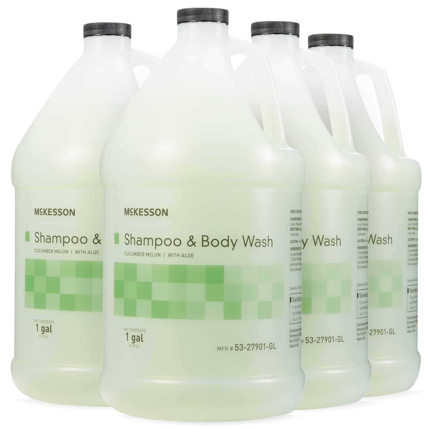 McKesson Body Wash and Shampoo [4 Count] - 1 Gallon Bulk Refill Full Body Wash with Aloe, Cucumber Melon Scent - Sensitive Skin & Hair 2‑in‑1
