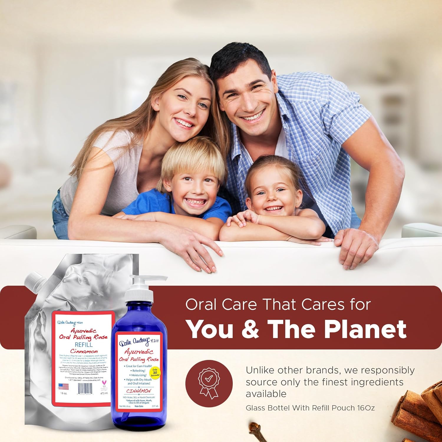- PROUDLY MADE IN THE USA: Dale Audrey’s Ayurvedic oil pulling rinse is not only made in the USA but is also: alcohol-free, glycerin-free, gluten-free, cruelty-free, and chemical-free. It is also vegan, recommended by dentists and dental hygienists, and clinically tested. This pre-rinse smart mouthwash effectively combats bad breath, maintains gum health, and strengthens and whitens teeth.