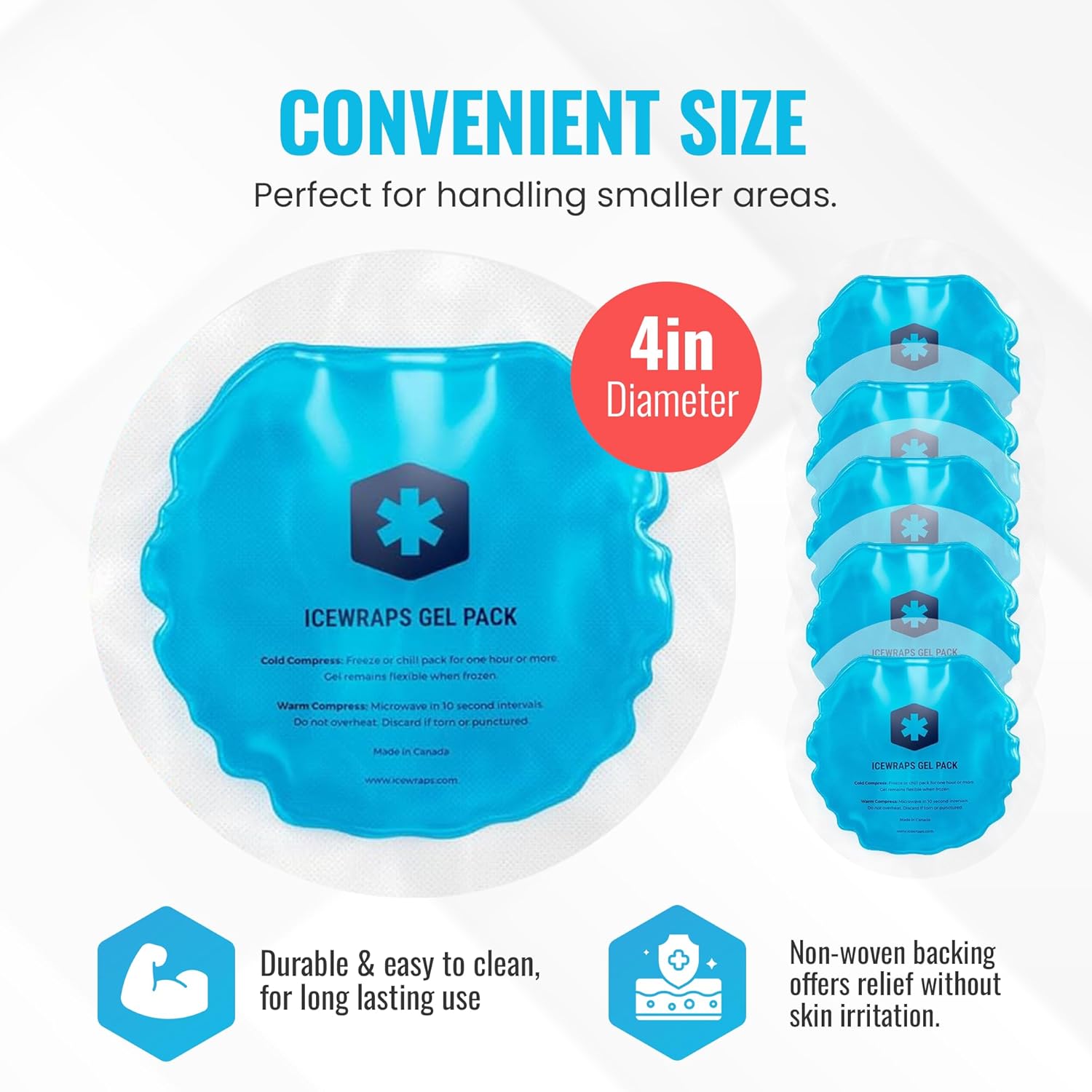 - Made In Canada: IceWraps offers high-quality flexible and reusable gel ice packs made of 97% Canadian filtered water. These medical-grade reusable ice packs have complied with rigorous US safety standards and can be used for hot and cold therapy.