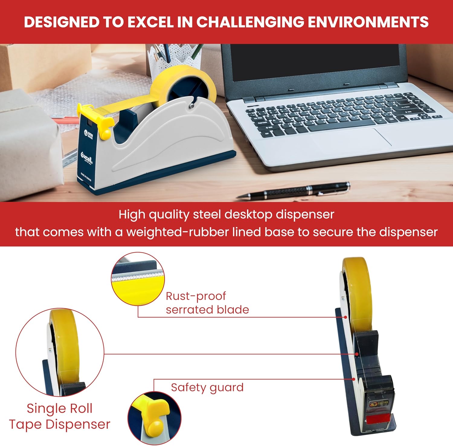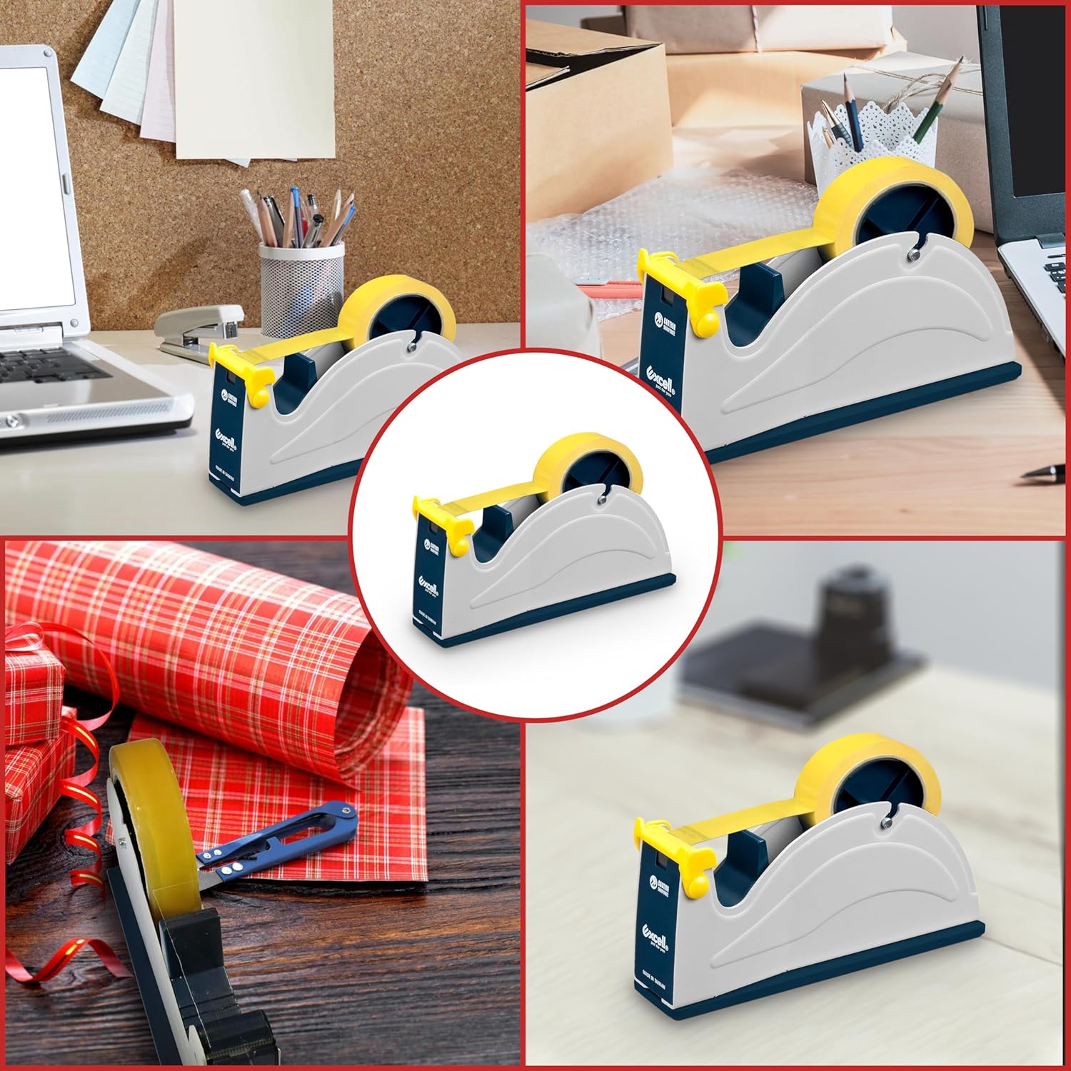 - This multi-purpose desktop tape dispenser is suitable for various tasks such as sealing boxes, envelopes, and letters, or for decorative purposes, making it a practical tool for offices, homes, and warehouses.
