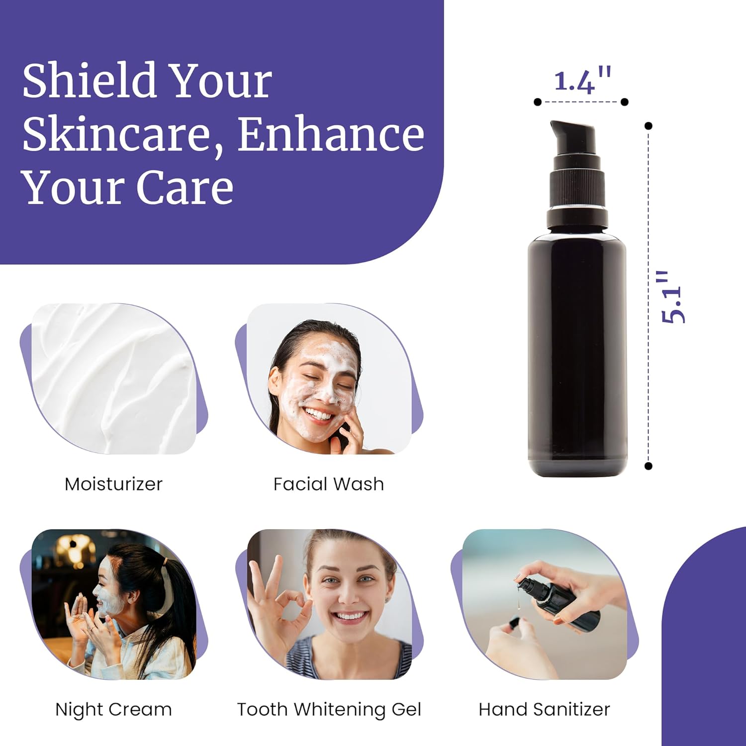 Infinity Jars 50 Ml (1.7 fl oz) Refillable Ultraviolet Black Glass Pump Bottles Leak-Proof Travel Containers for Toner, Sanitizer, Beard Oil, Hair Serum, Essential Oils 10-Pack