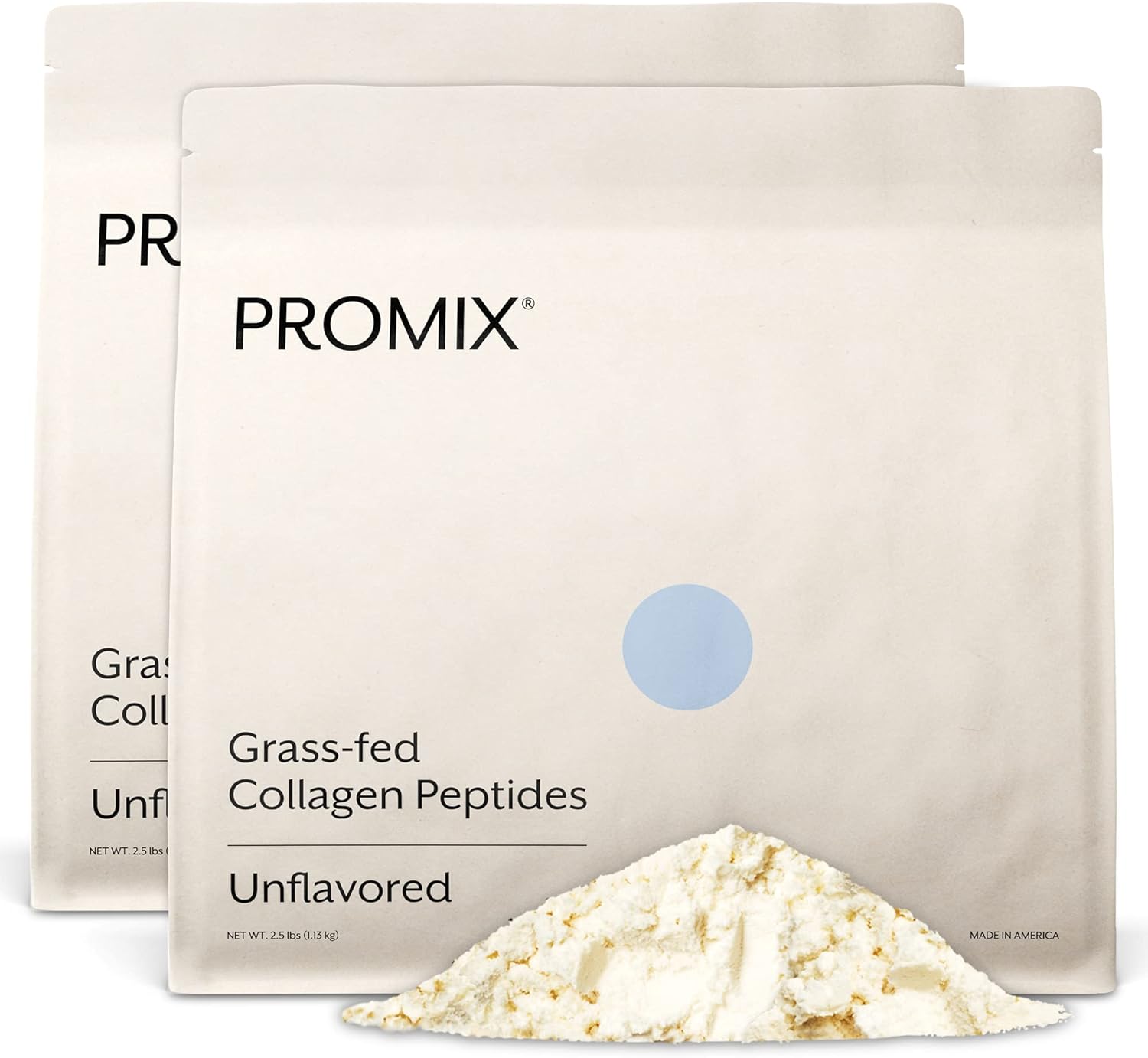 - Best for Skin, Bones, Joints, and Recovery Support: Promix Collagen Peptides are hydrolyzed type I and III collagen peptides from grass-fed Brazilian cattle. This unsweetened, light, and clean powder contains key amino acids to support gut and joint health.* Unflavored. 2 bags with 52 servings each, 2 scoops per serving.