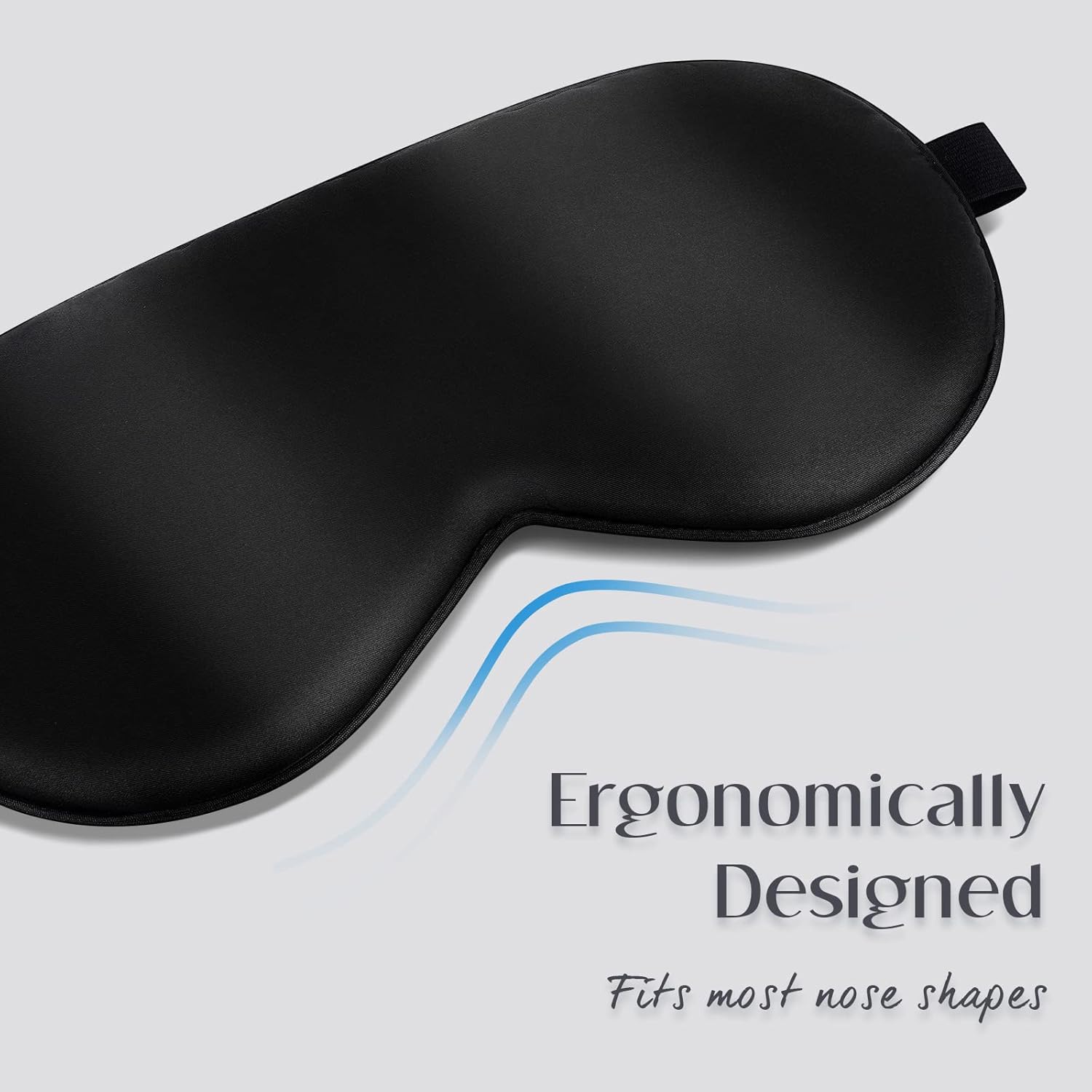 - ERGONOMIC DESIGN FOR BETTER LIGHT-BLOCKING: A sleeping mask with bad design will let light sneak in and disrupt your sleep, this can be very annoying especially when you are a side sleeper and very sensitive to light. So we are here to help. Our eye cover with ergonomic design and big coverage will fit most nose shapes and effectively prevent light from leaking in. Your good night’s sleep will be secured