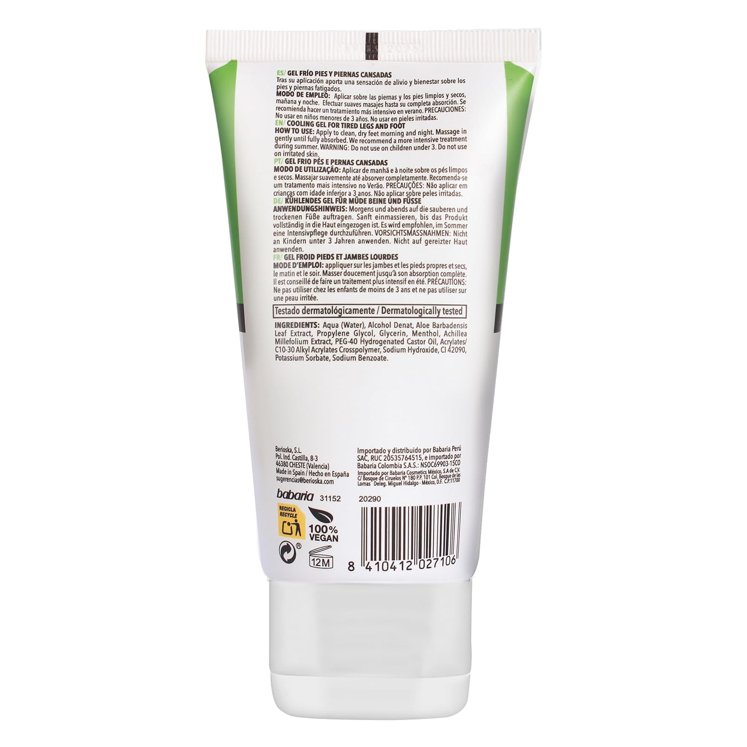 - PROVIDES A FAST HYDRATING EFFECT. The effective formula of Babaria Foot Cooling Gel combines the soothing benefits of aloe vera with the nurturing and decongestant properties of Achillea millefolium, a plant used in cosmetics to assist in well-being.