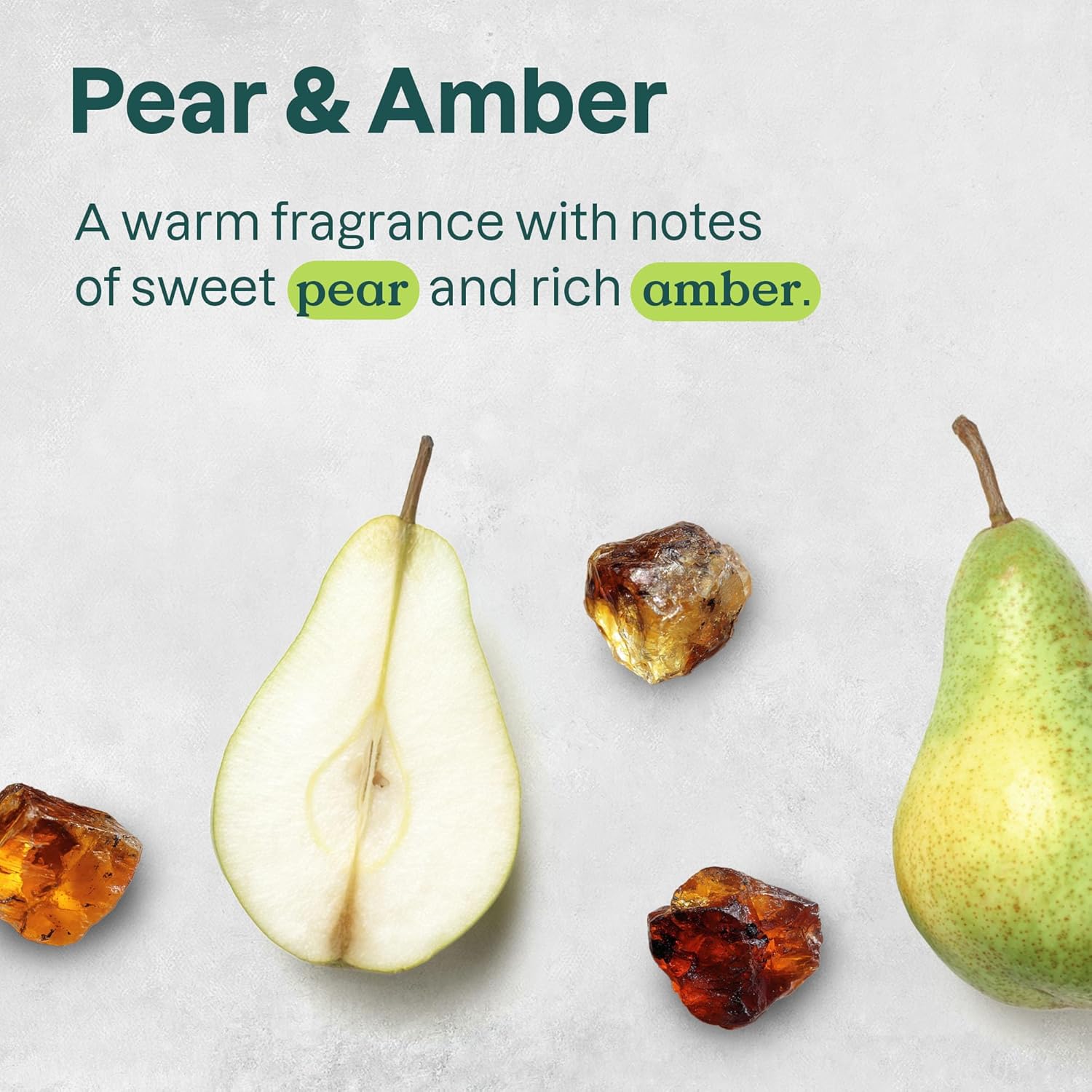 - PEAR & AMBER FRAGRANCE: A delicate fragrance features juicy pear with vibrant notes of nectarine and ginger for a naturally energizing and refreshing experience.