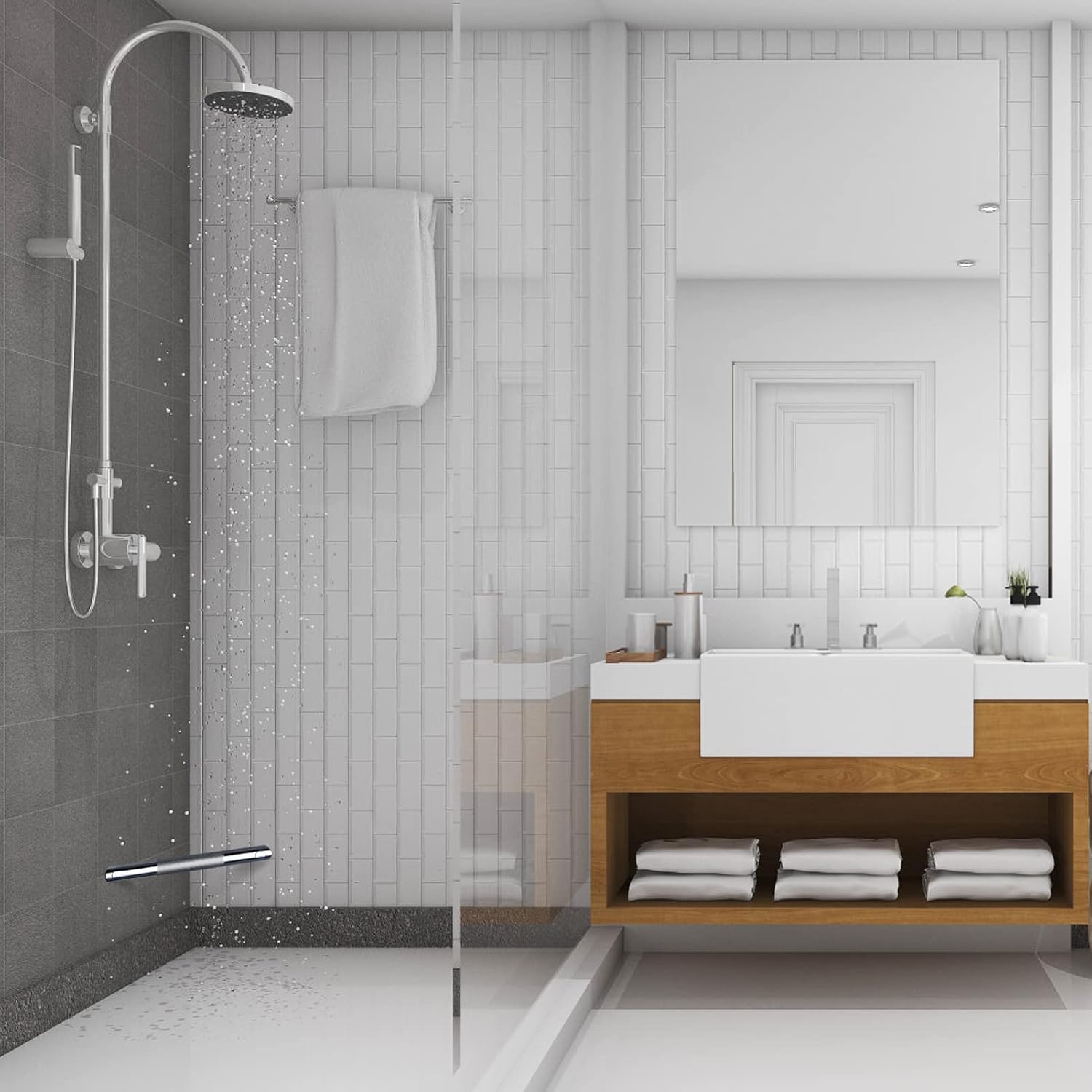 - Great Design: Standard hotel bathroom corner footrest bar for shower to shave legs. It's suitable for small bathroom decorations. The shower step foot stool with knurled texture keeps your foot from sliding off even when wet and soaping.