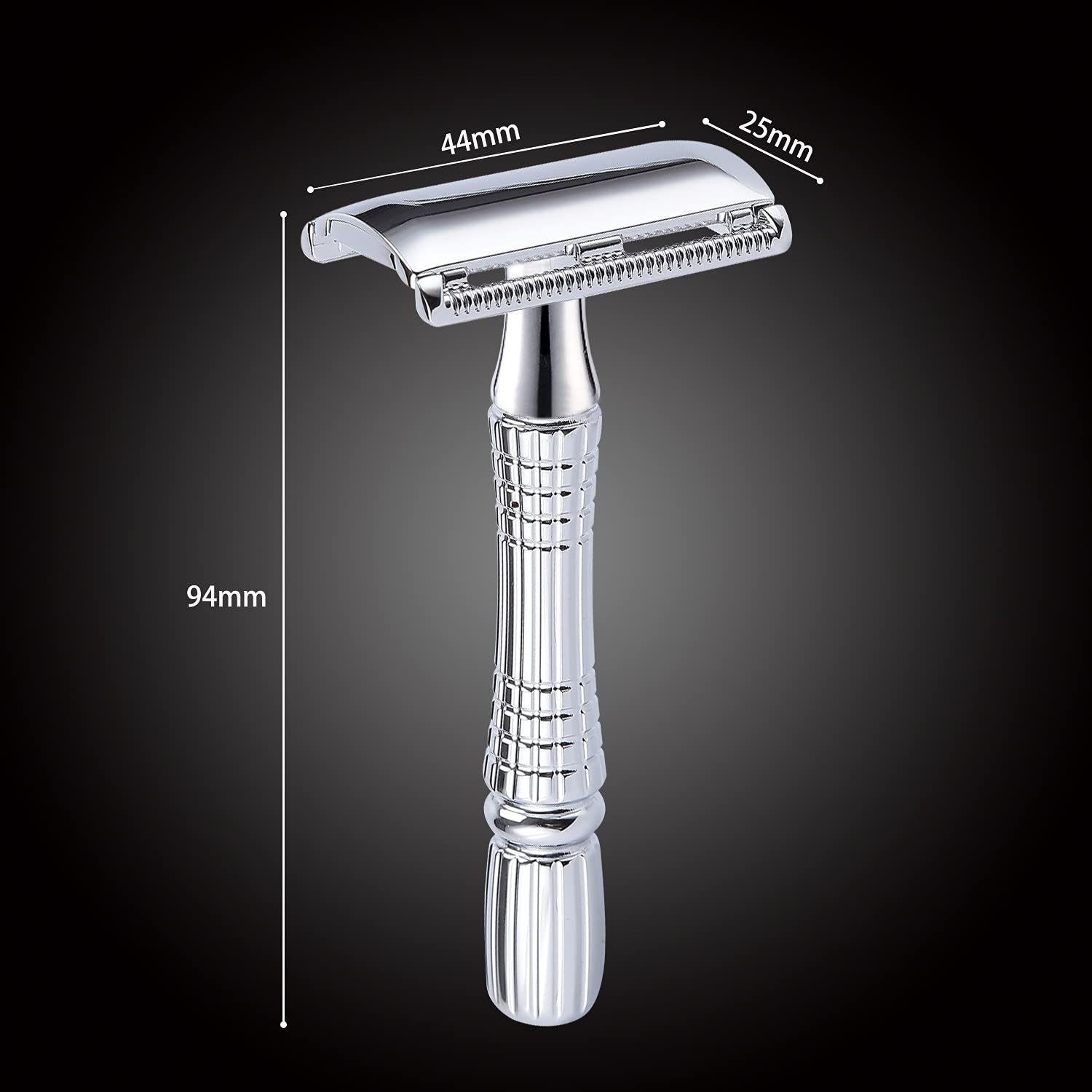 - PACKAGE CONTENT: 1x Safety Razor (94mm/3.7in long, 76g/2.7oz weight). 1x Double Edge Razor Blade. 1x Mirrored Travel Case.