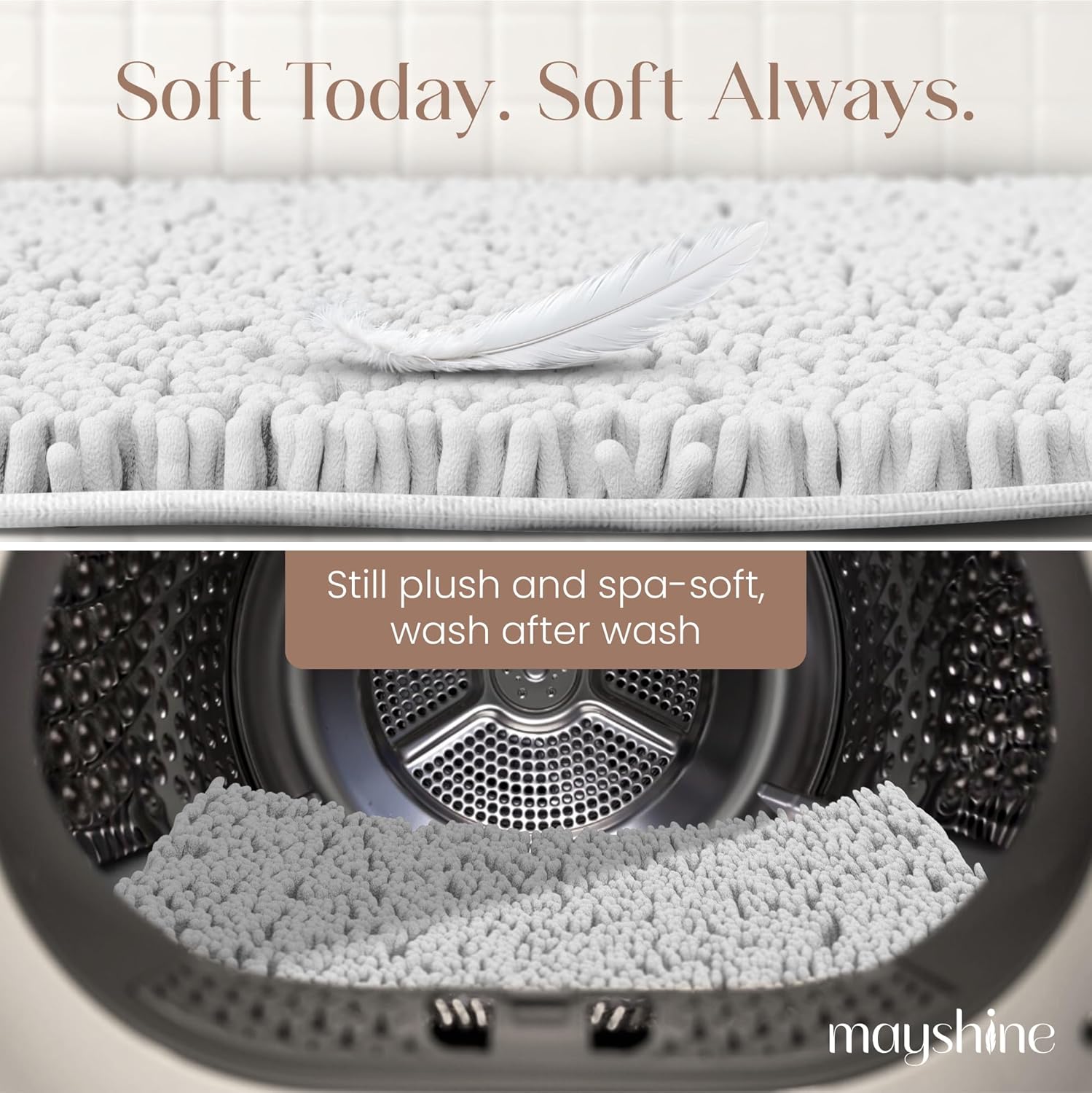 MAYSHINE Plush Shaggy Chenille Bath Mat | Extra Soft, Super Absorbent, Non-Slip Bathroom Rug | Fluffy Microfiber, Area Rug Sets for Bathroom Floor, Kitchen, Living Room | 39"x24" | White