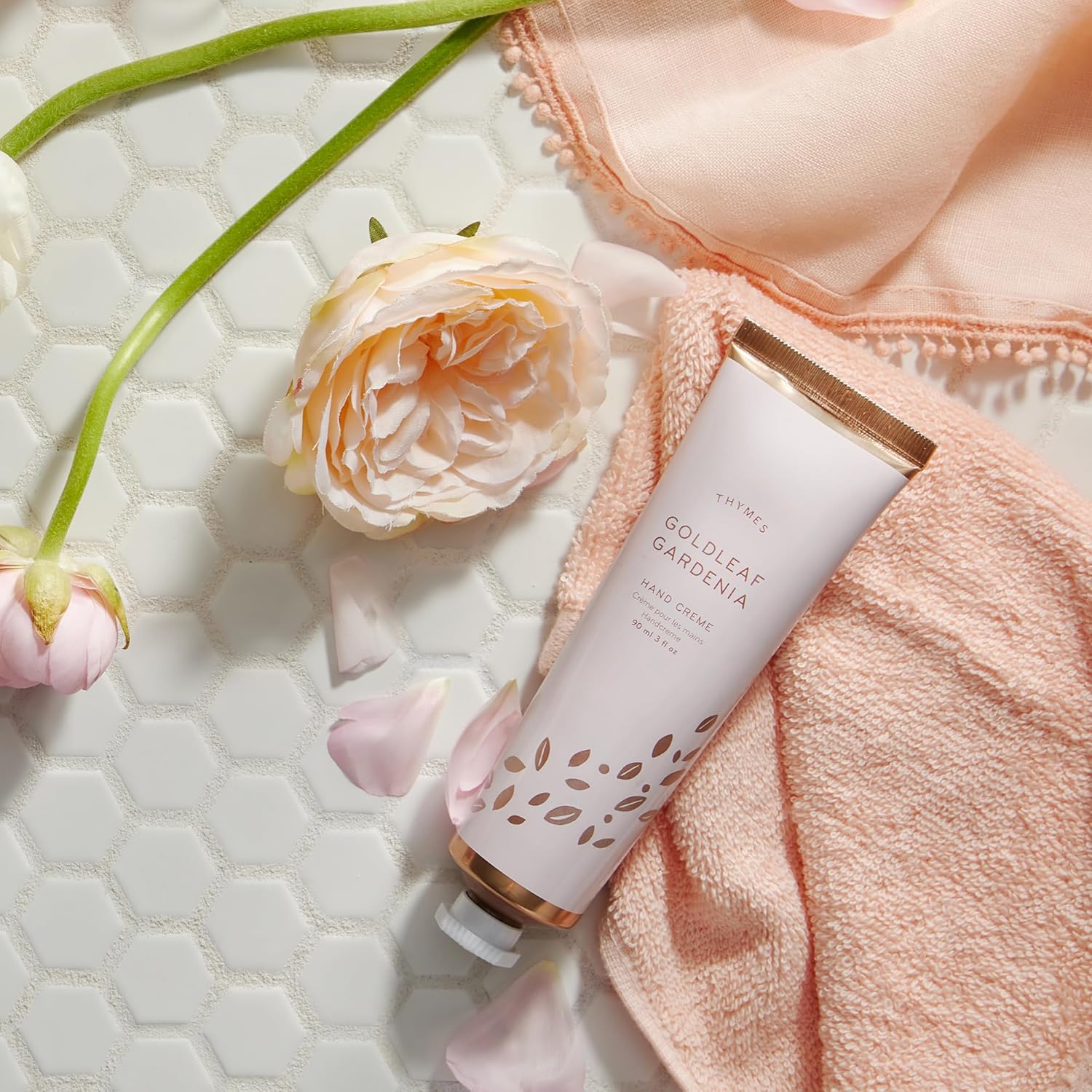 Thymes Hand Crème - Deeply Moisturizing Hand Cream with Light Floral Scent for Women (Goldleaf Gardenia, 3 oz)