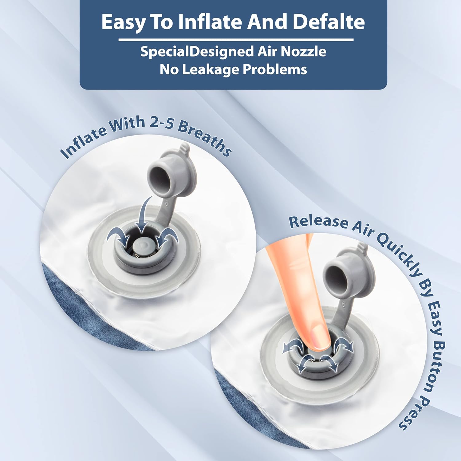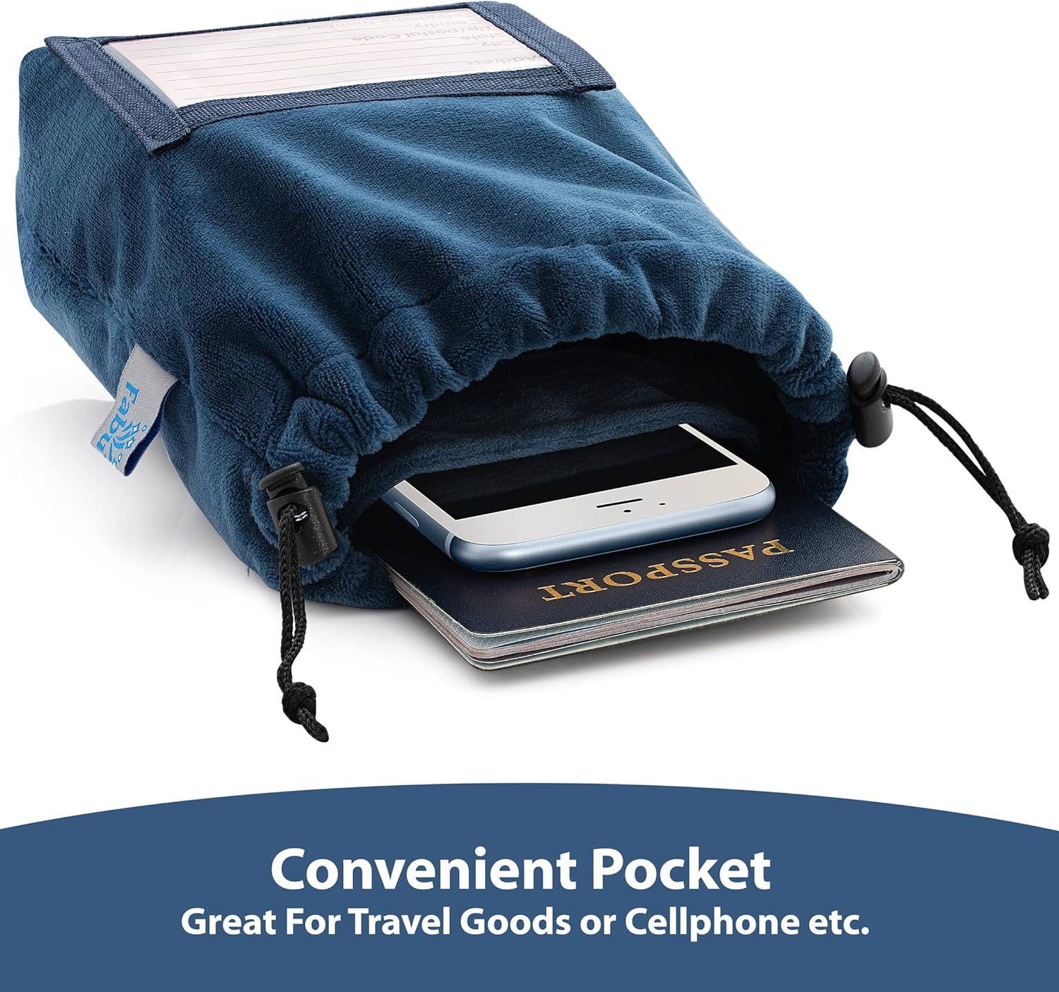 Inflatable Travel Neck Pillow: Extra-Soft, Cushion. For Airplanes, Trains, Cars, Portable Travel Accessory-With Carrying Pouch For cell phone and Passport Etc. (Blue)