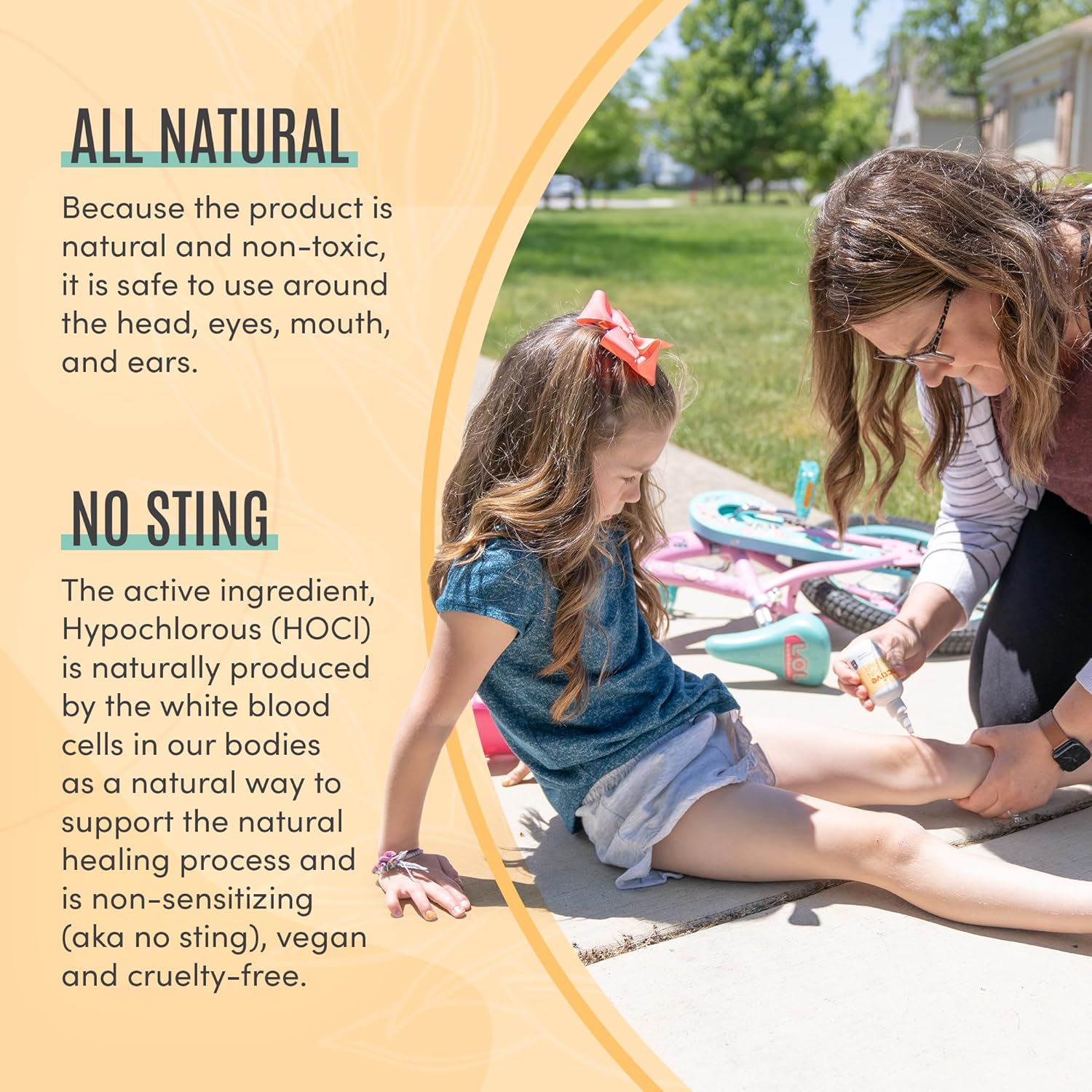 - FIRST AID HYPOCHLORUS ACID HYDROGEL: The technology used in Active Skin Repair is the same safe and gentle molecule used in hospitals & households worldwide; Hypochlorus Acid cleanse wounds to help skin recover faster