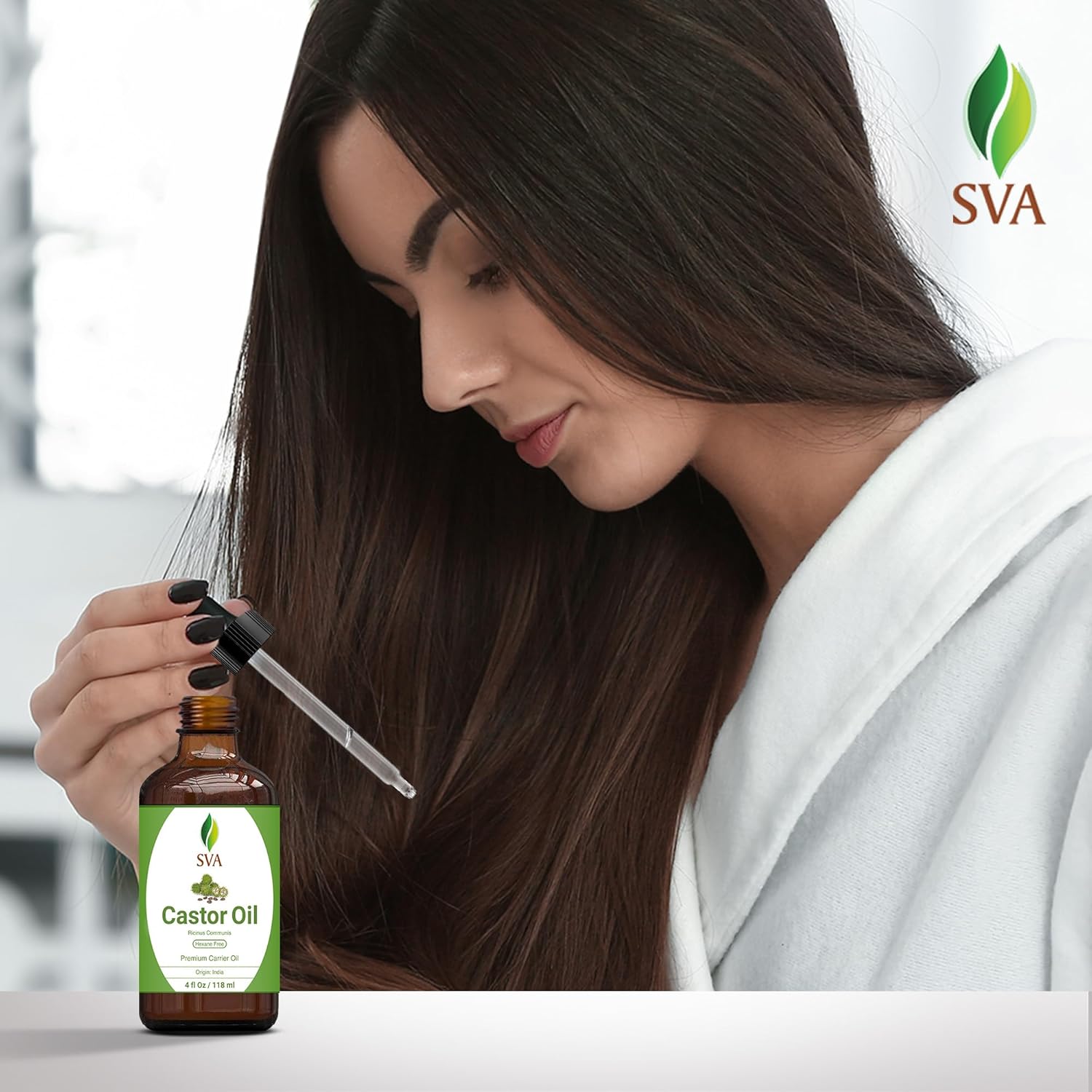 - Premium High-Quality Castor Carrier Oil: SVA Castor Oil is obtained by cold-pressed extraction of Ricinus Communis seeds. Our Castor oil is Hexane-free and free of preservatives, Our Castor oil comes in a glass bottle with a dropper for easy application. It is not tested on Animals. We care for you
