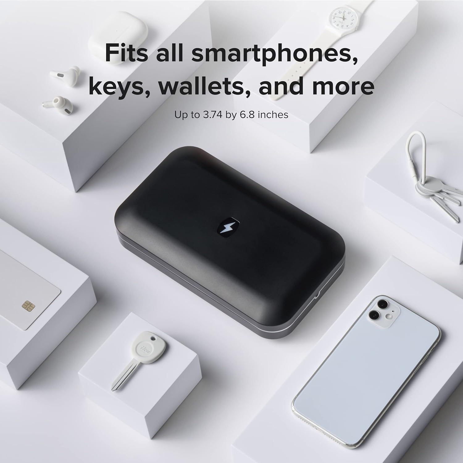 PhoneSoap 3 UV Cell Phone Sanitizer & Dual Universal Cell Phone Charger Box | Patented & Clinically Proven 360-Degree UV-C Light Sanitizer | Disinfects and Charges All Phones (Black)