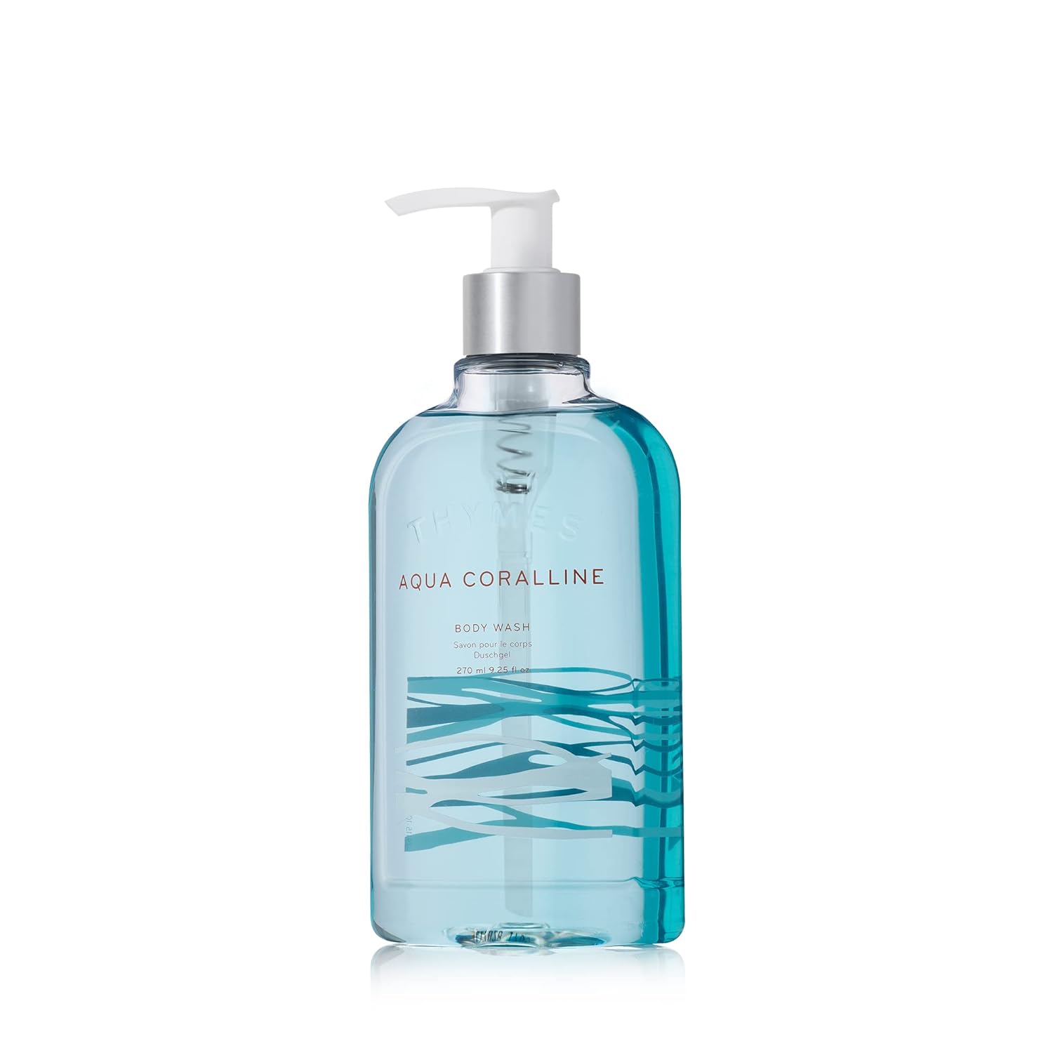 Thymes Moisturizing Body Wash with Pump - Body Soap - Bath Products - Skin Care - Liquid Soap with Notes of Water Lily, White Cyclamen, Driftwood, Yuzu, & Bamboo (Aqua Coralline, 9.25 fl oz)
