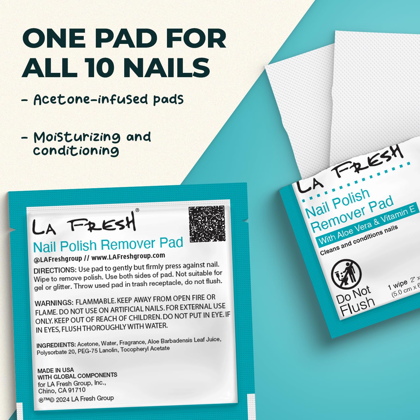 - COST-EFFECTIVE - One pad for 10 nails. Our nail polish remover wipes are potent enough to lift away all the polish on your fingers with a single pad only. Save money for your nail care with La Fresh.