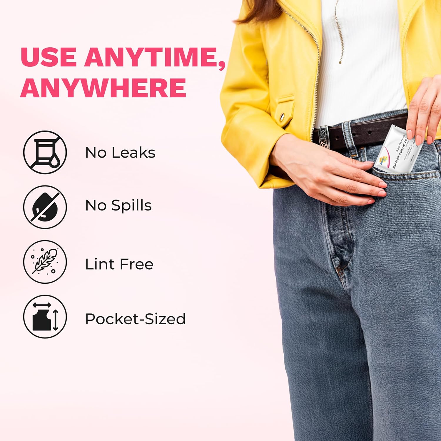 - CONVENIENT - These nail polish remover pads individually wrapped are easy to carry and use anytime and anywhere. Pack it for your everyday and as a travel nail polish remover.