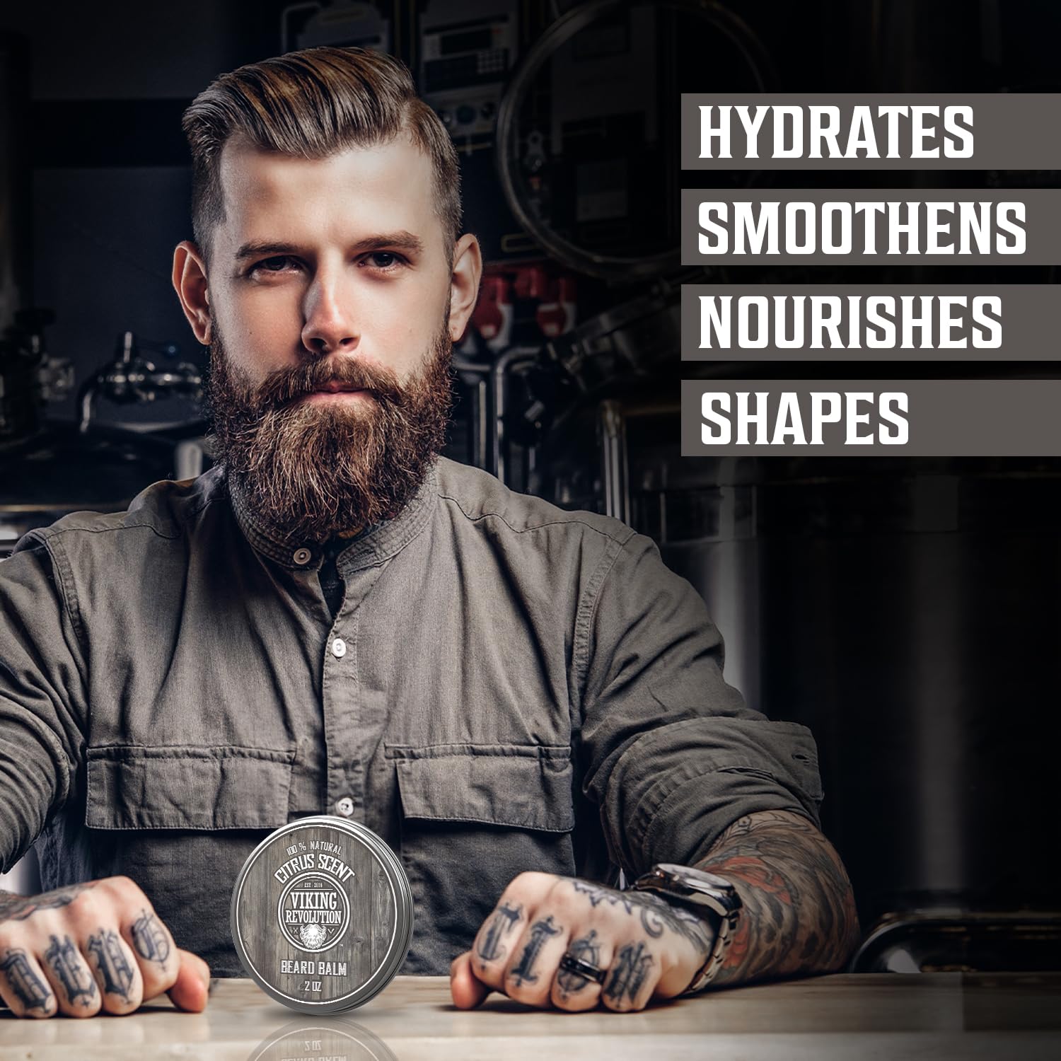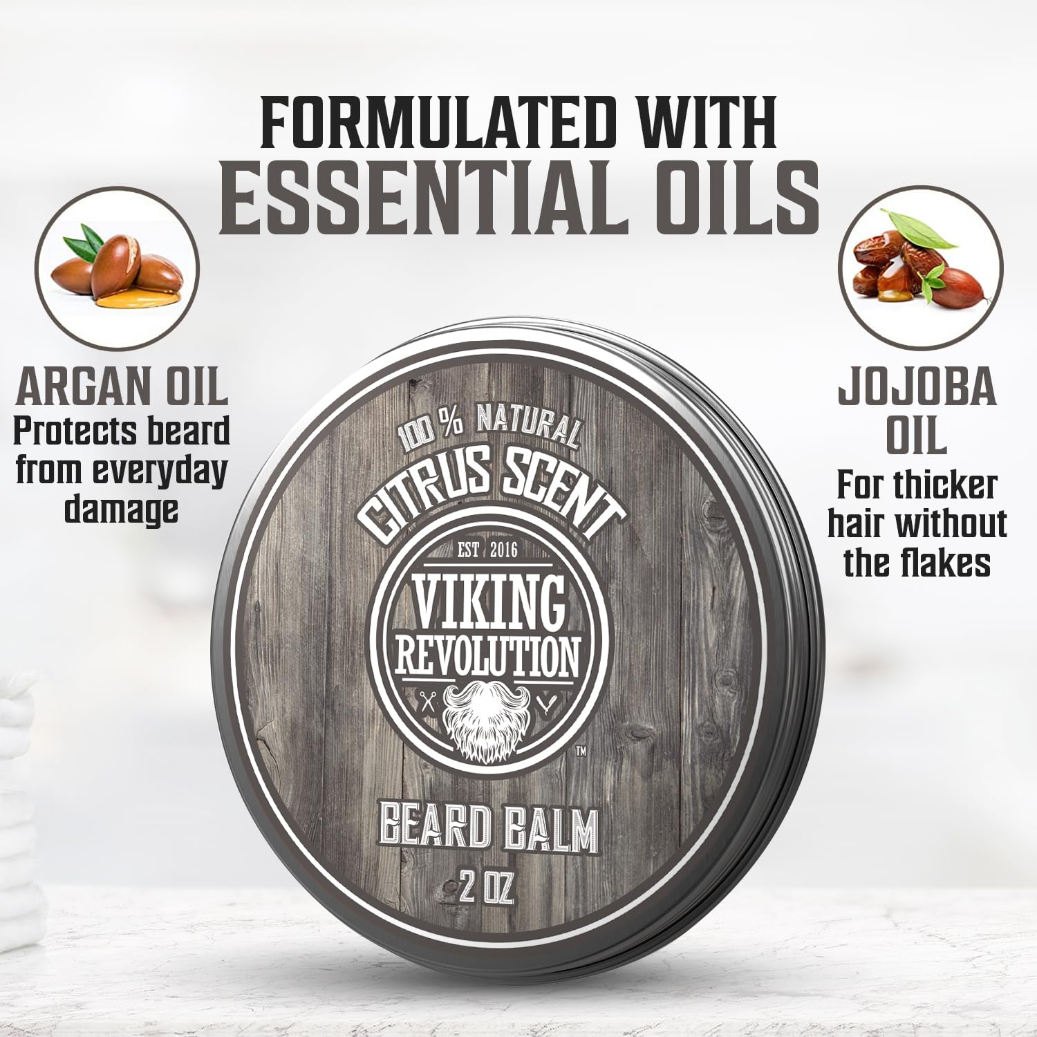 Viking Revolution BEST DEAL Beard Balm with Argan Oil & Mango Butter - Styles, Strengthens & Softens Beards & Mustaches - Citrus Scent Leave in Conditioner Wax for Men