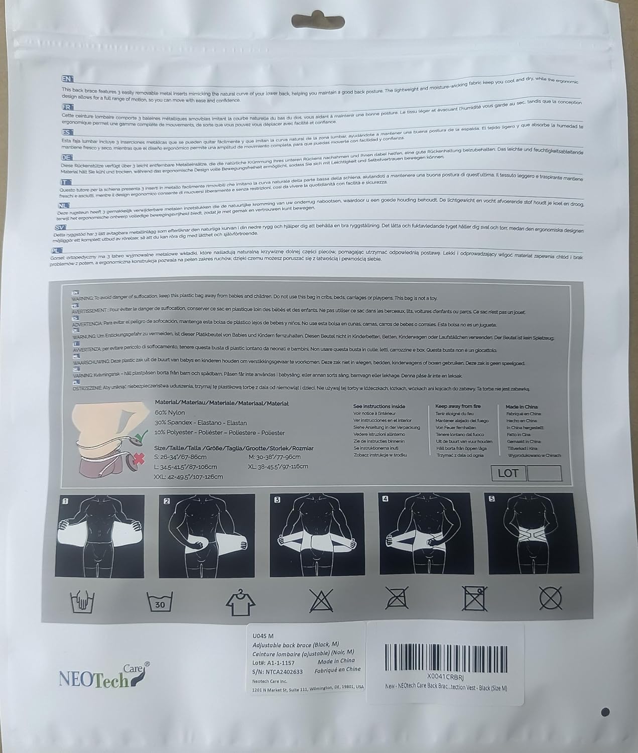 - Lightweight and ergonomic design for unrestricted movement with the back support brace. Perfect for lifting and everyday activities.