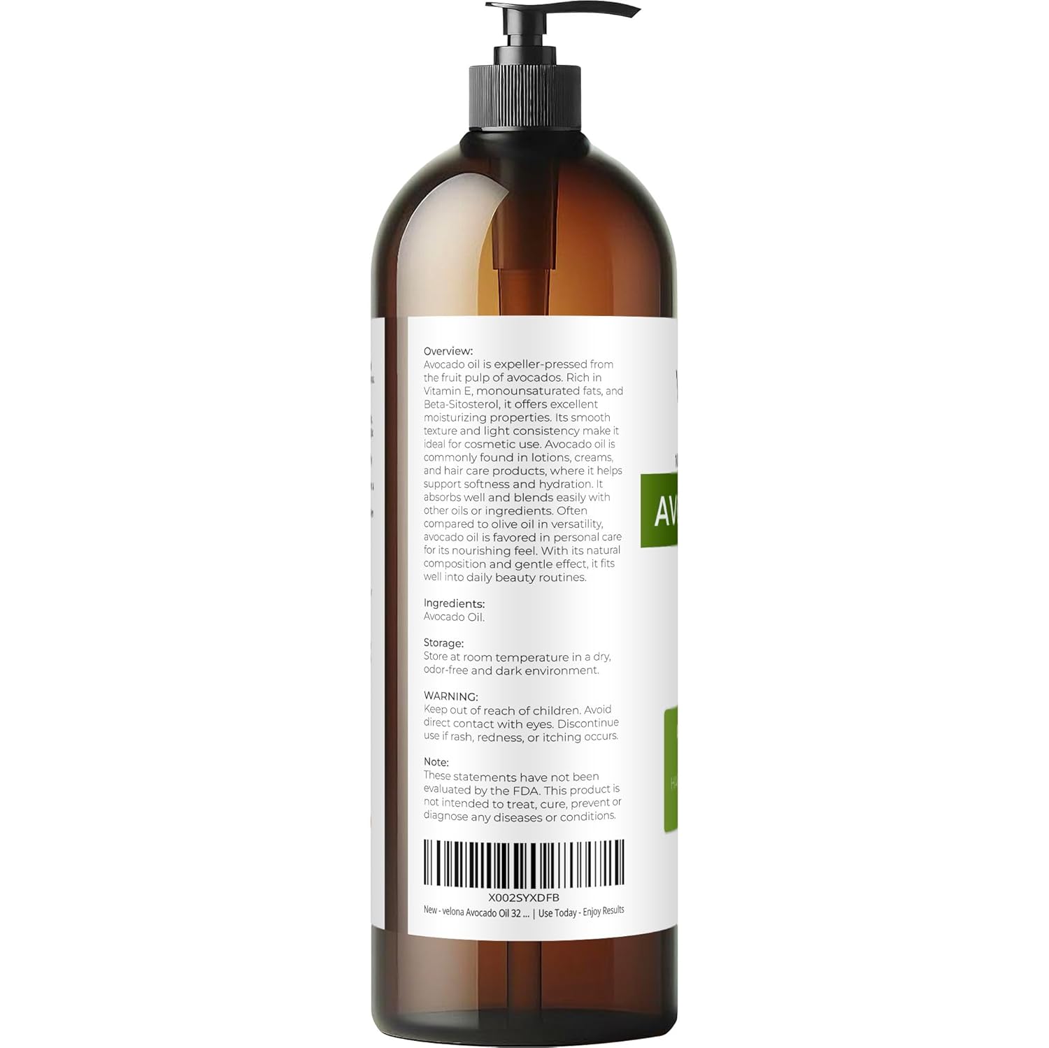 velona Avocado Oil 32 Fl Oz | 100% Pure and Natural Carrier Oil | Expeller-Pressed | Hair, Body and Skin Care | Use Today - Enjoy Results