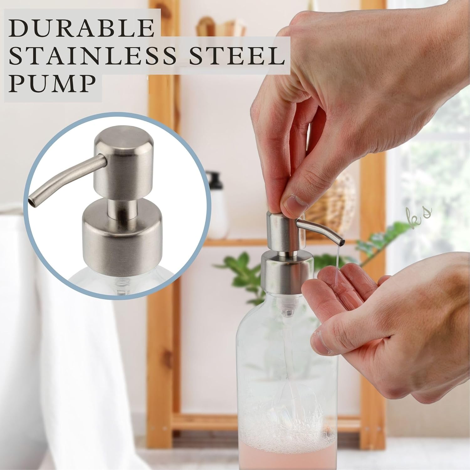 - VALUE 4-PACK: You get four 8-ounce clear glass bottles & 4 stainless steel pump tops
