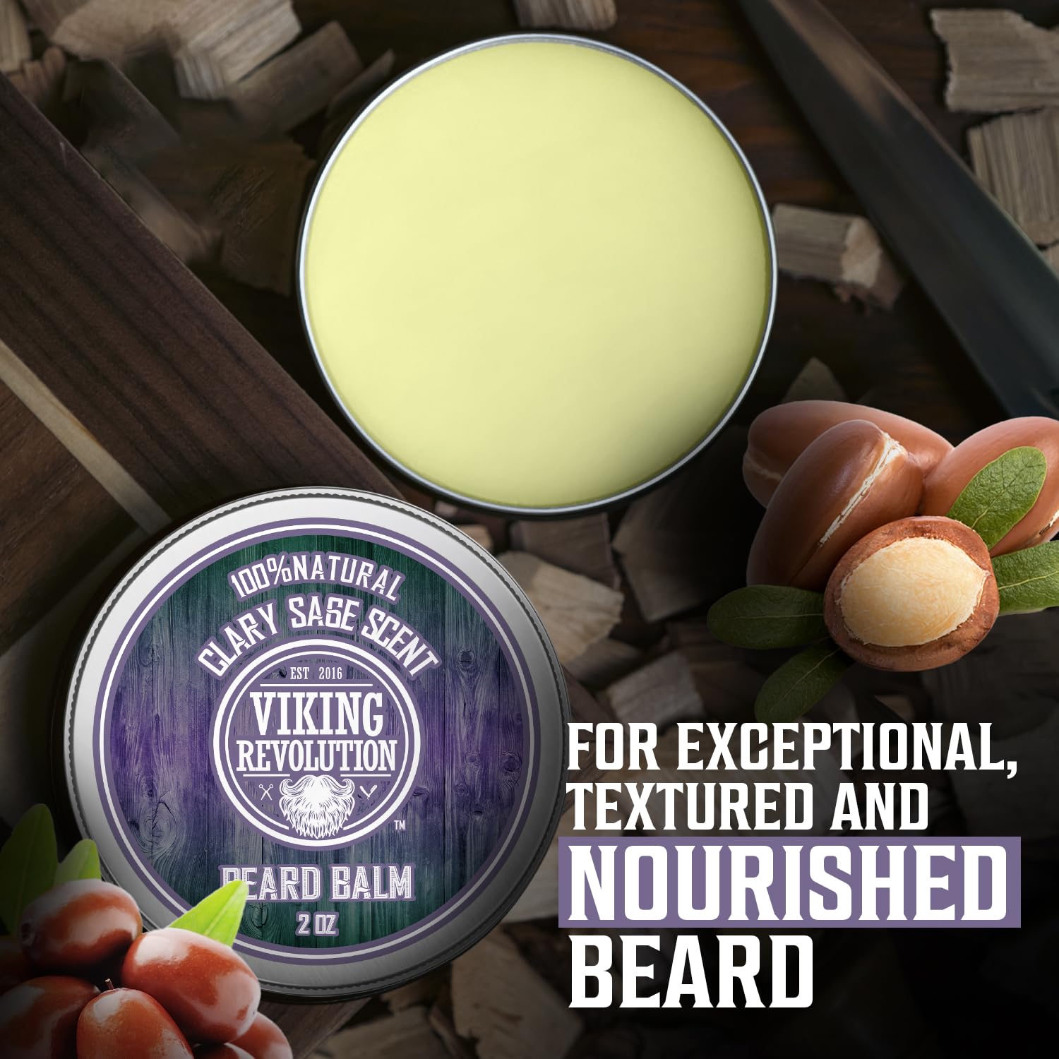 Viking Revolution Clary Sage Beard Balm - Beard Butter with Argan Oil, Beard Softener for Men with Jojoba Oil - Beard Moisturizer for Men with Beeswax - Beard Wax for Men (2oz, 1 Pack)