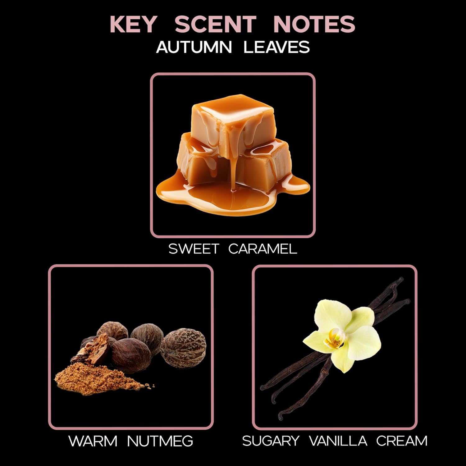 - SPICED CARAMEL VANILLA – is a decadent blend of Caramel, Nutmeg, and Sugary Vanilla Cream; the Bell Diffuser with a light orange ribbon accent and warm autumn botanicals offers a cozy seasonal touch; pairs with soft oranges, corals, and rustic décor.