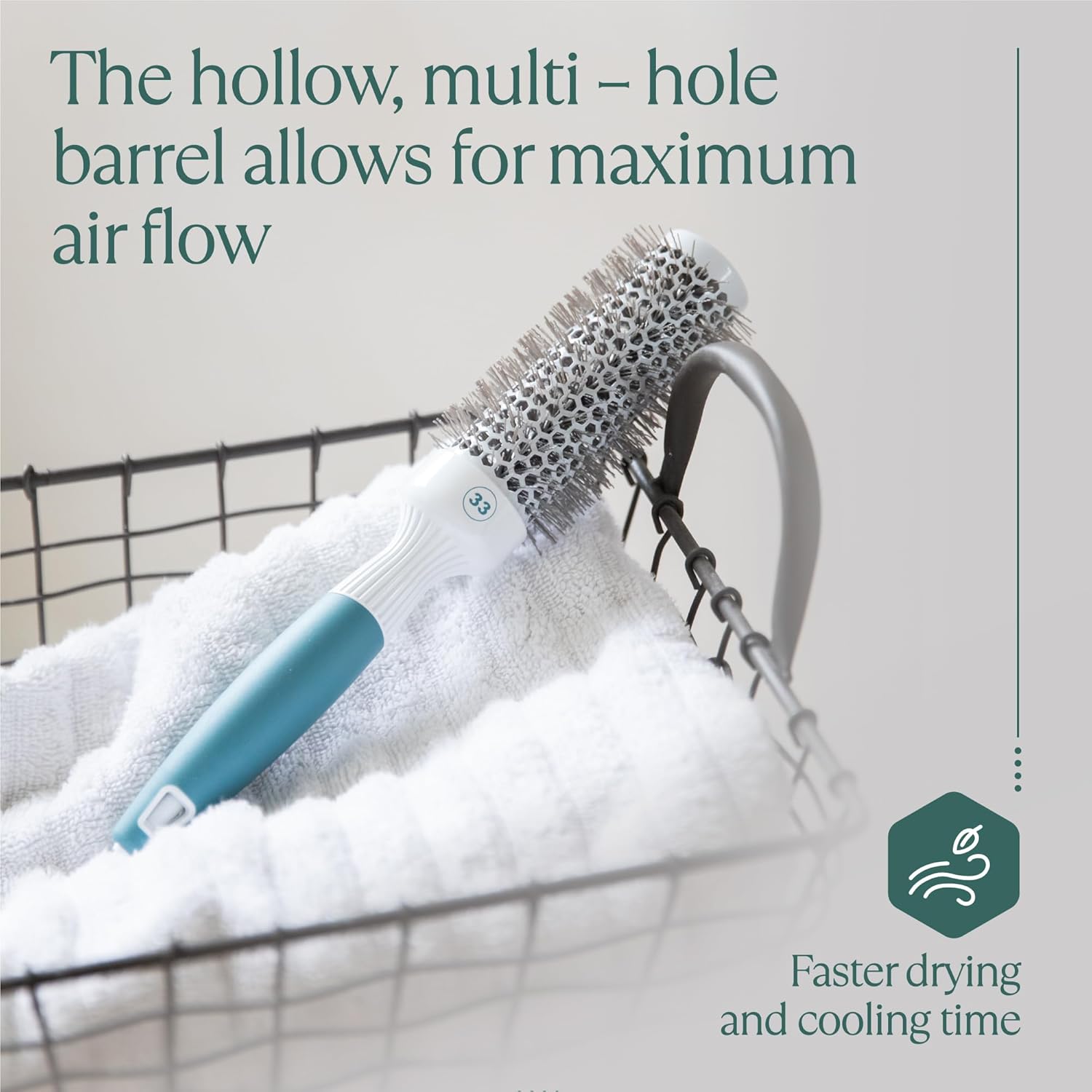 - IT'S ALL IN THE BRISTLES; Our 2 inch bristles are a whole lot more than what meets the eye, Not only are they antistatic, ionic mineral infused and naturally healthier for hair and maximum shine, the 1.3 inch barrel is tough enough to withstand high heat, and the benefits don’t stop there, Polished bristles gently massage the scalp and prevent against damage and breakage, while wavy bristles cover maximum area for styling with less effort