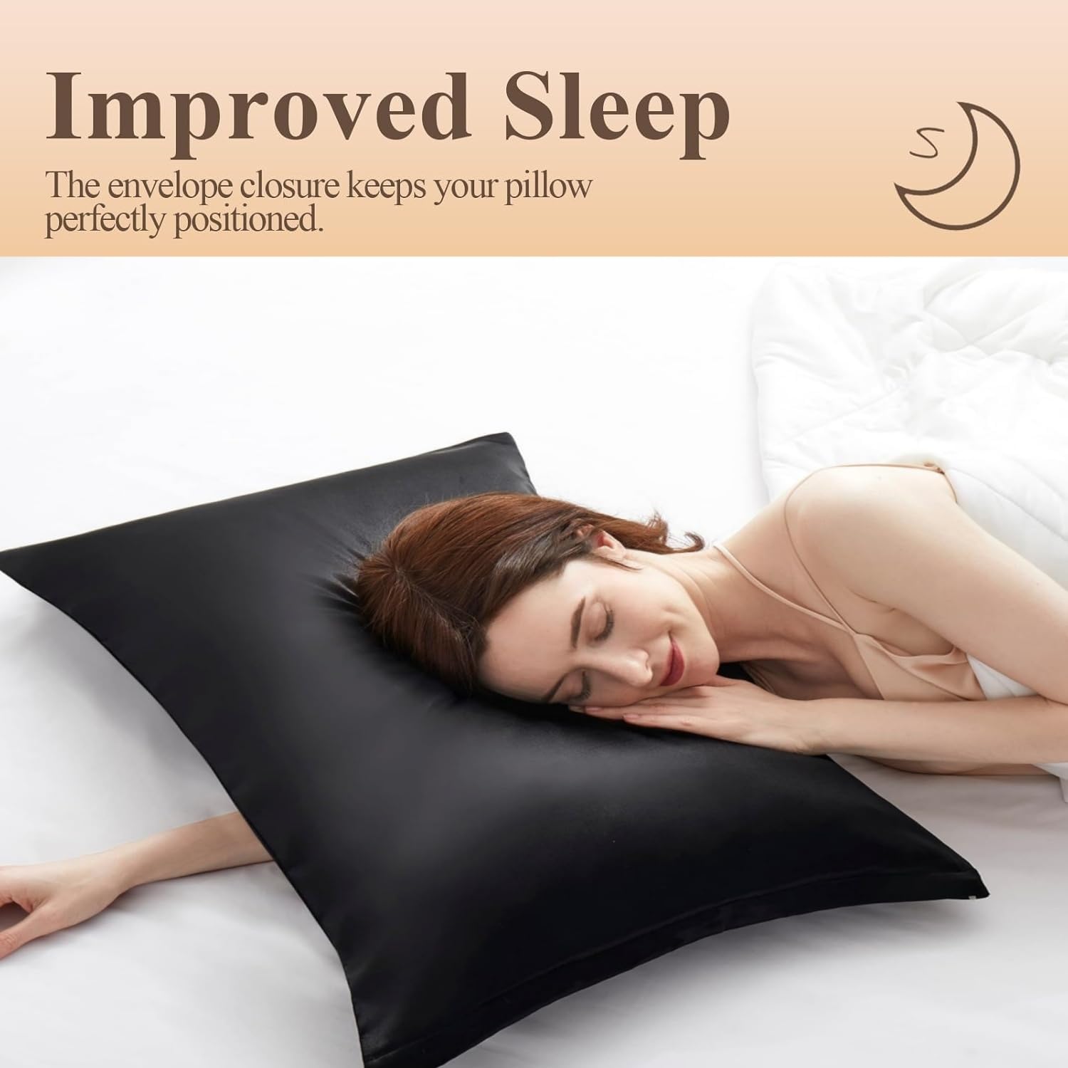 Juwenin Bedding,Luxury Satin Pillowcase with Zipper (Silky Satin Pillow Case for Hair) Set of 2 (Black, Queen(20''x29''))