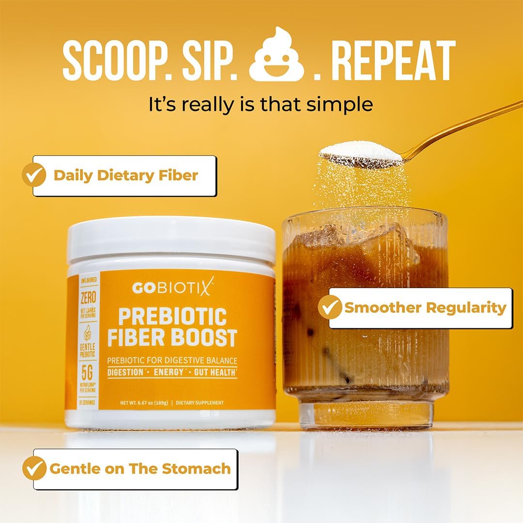 GOBIOTIX Fiber Supplement Powder with Prebiotics for Digestive Health and GLP-1 Support, Soluble Fiber for Gut Health & Debloat, Keto, Vegan, Gluten & Sugar Free, 35 Servings (1 Pack)