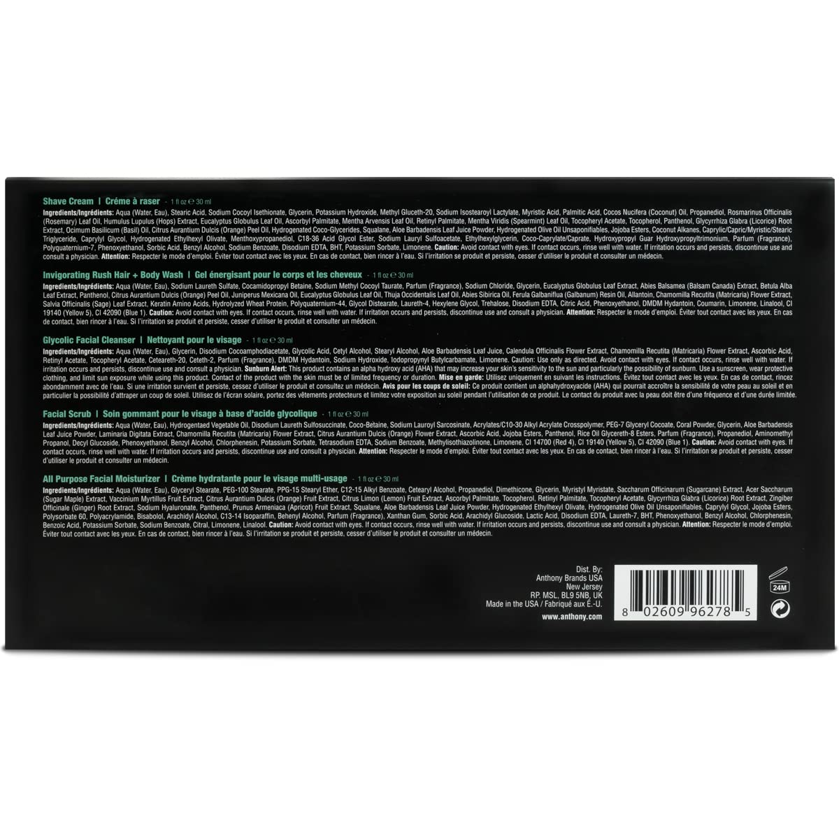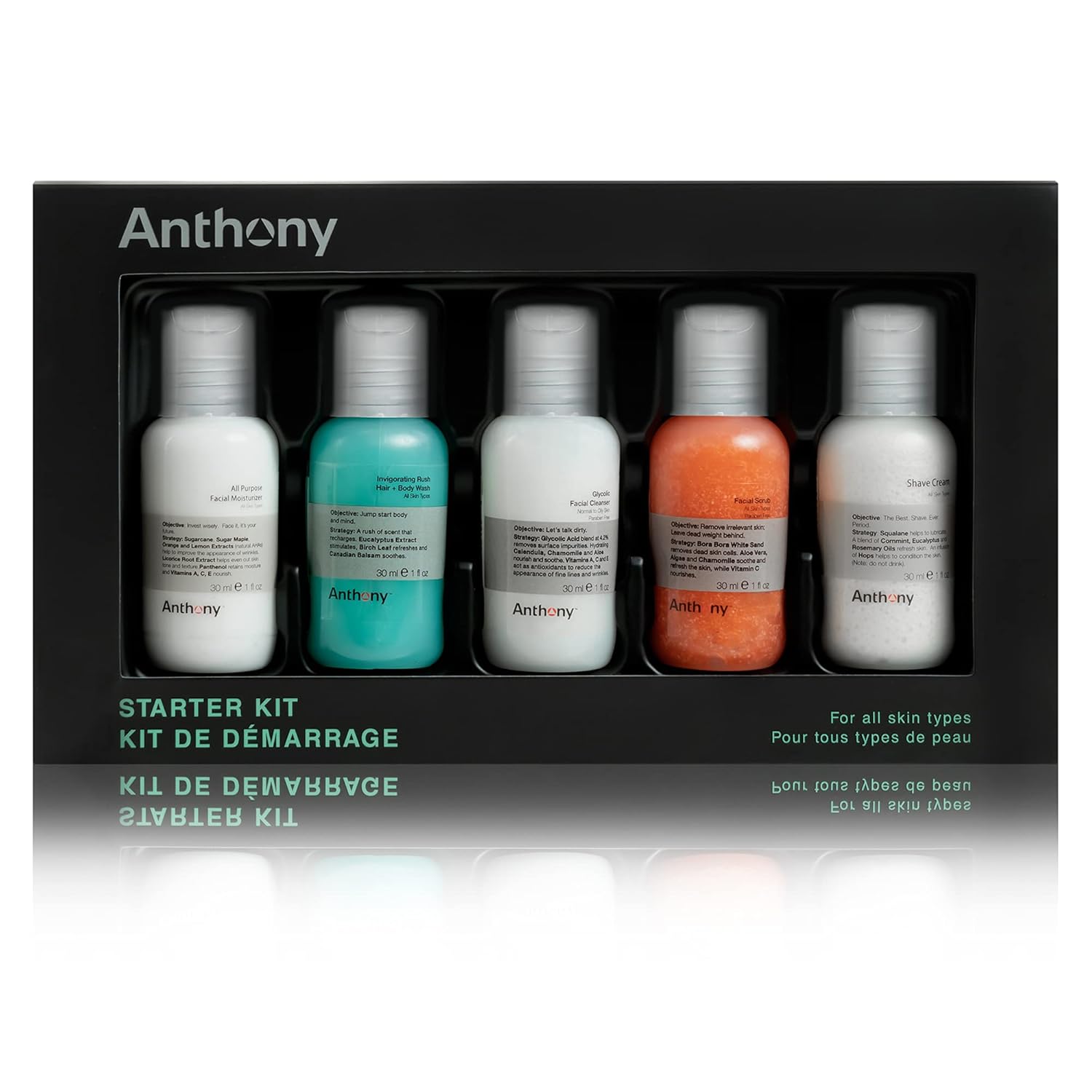 Anthony Starter Kit, 5 Count, Glycolic Facial Cleanser, Facial Scrub, All Purpose Facial Moisturizer, Invigorating Rush Hair & Body Wash, Shave Cream