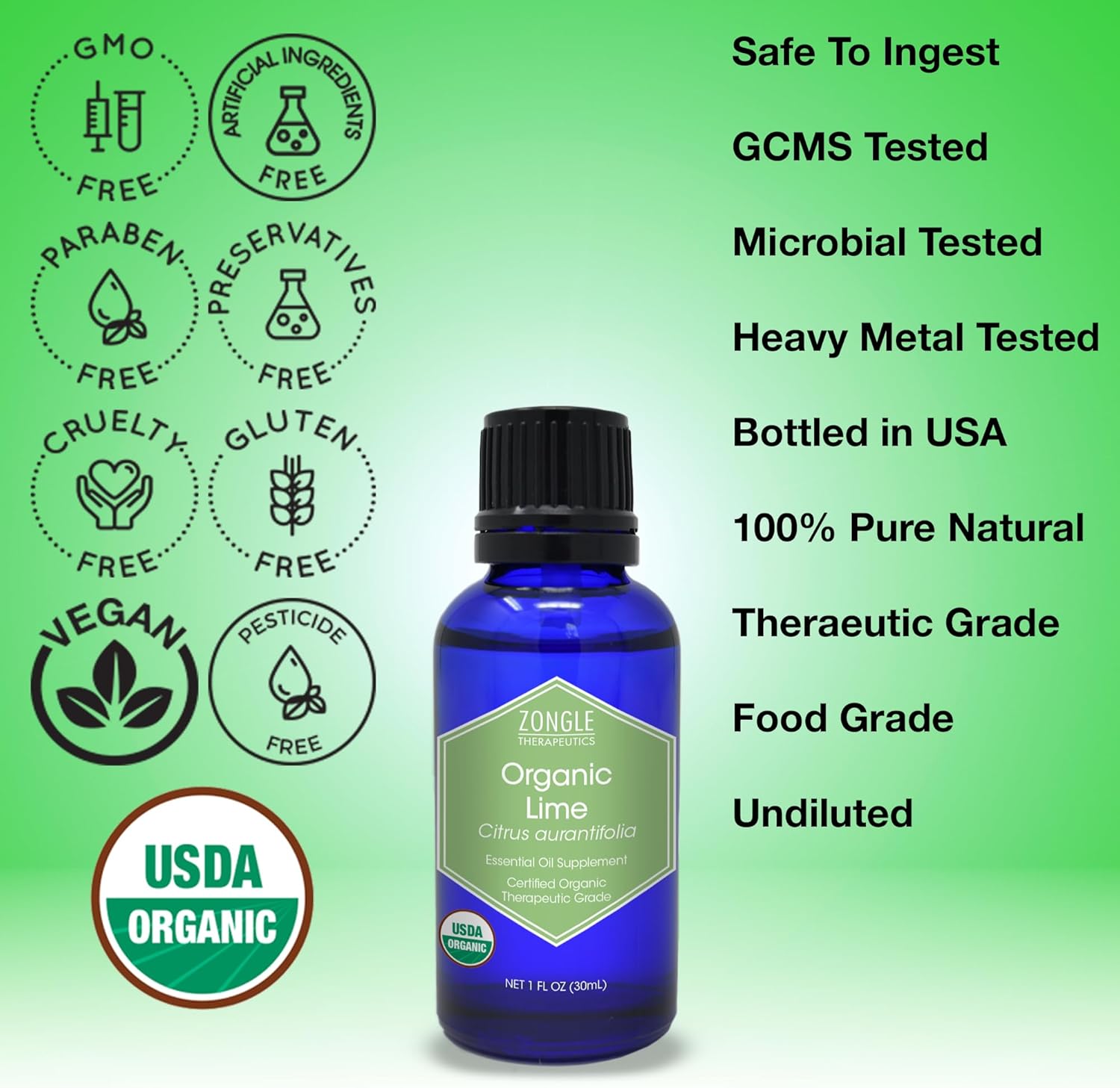 Organic, Lime Essential Oil, Food Grade, for Cooking – 100% Pure, Lime Oil, by Zongle Therapeutics, 1 OZ