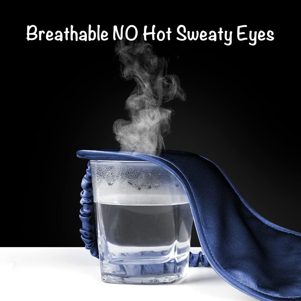 LULUSILK Mulberry Silk Sleep Eye Mask Blindfold with Elastic Strap Headband, Soft Eye Cover Eyeshade for Night Sleeping, Travel, Nap (Navy Blue)