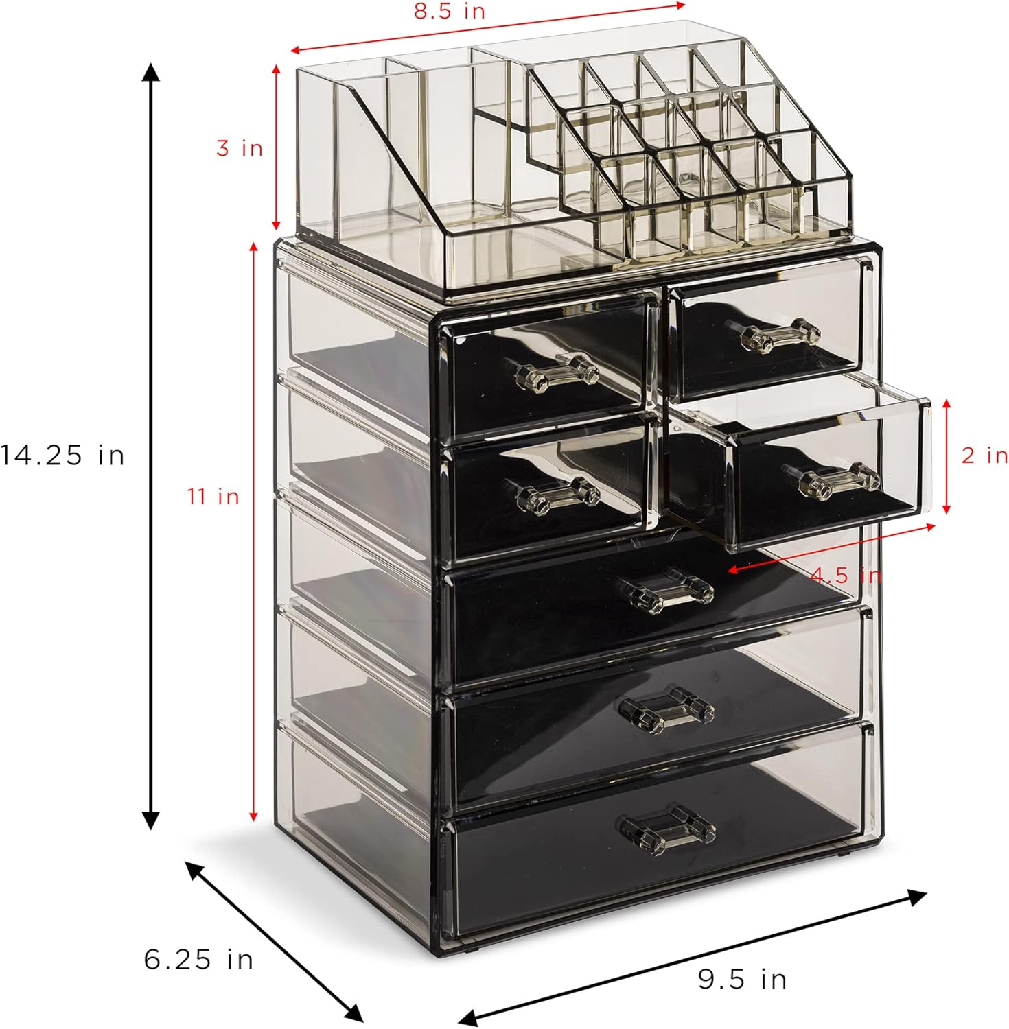 Sorbus Acrylic Makeup Organizer Set, 7-Drawer Vanity & Countertop Cosmetic Storage with Small & Wide Compartments, Black-Tint Makeup Storage for Brushes, Jewelry – Holiday Gift for Women & Teens